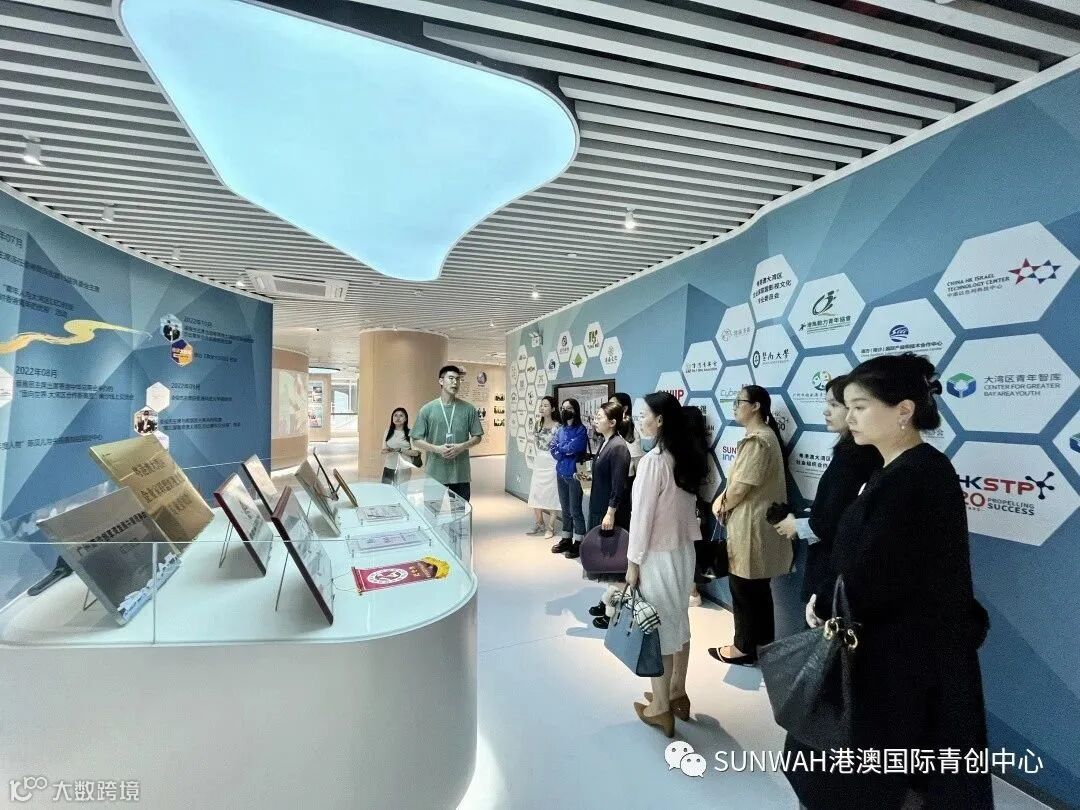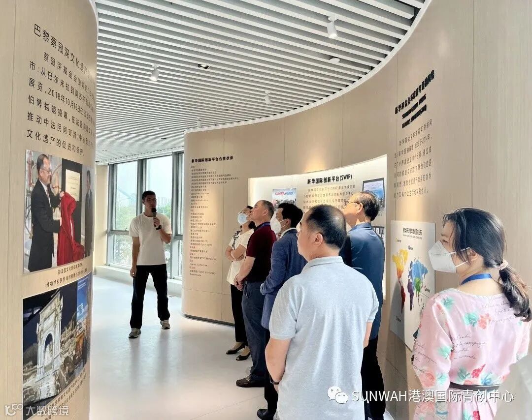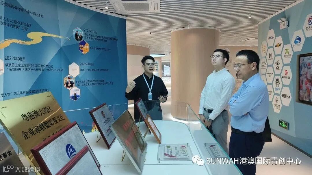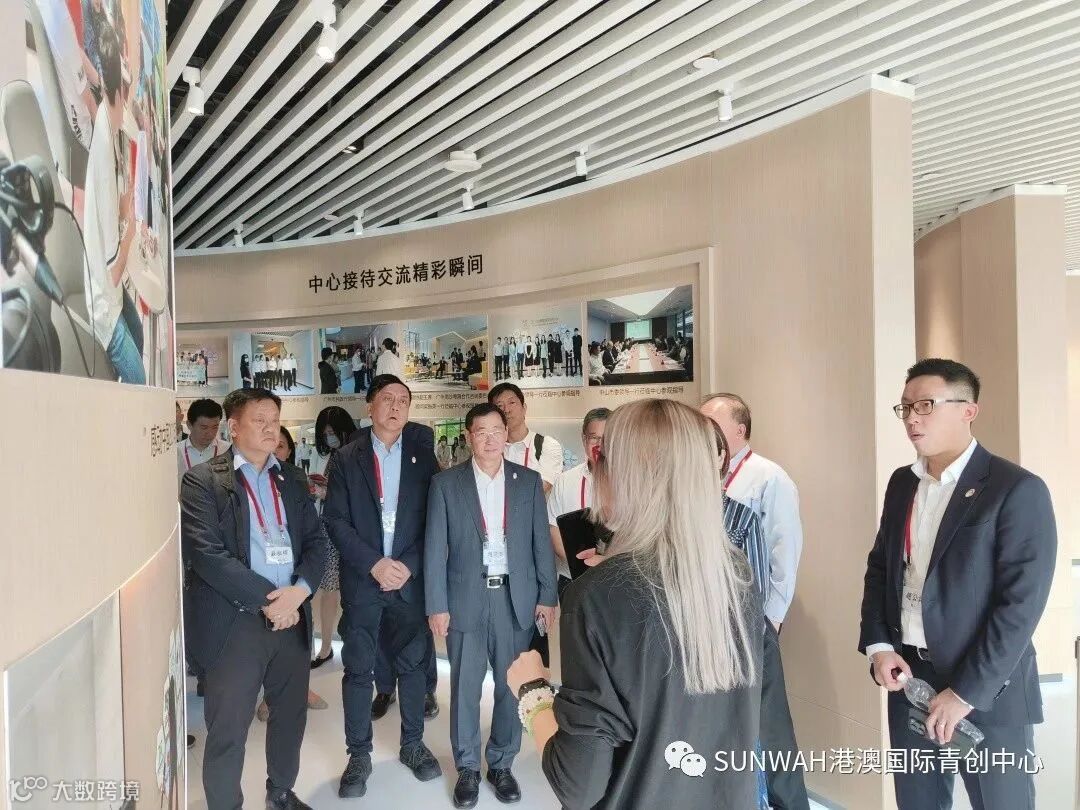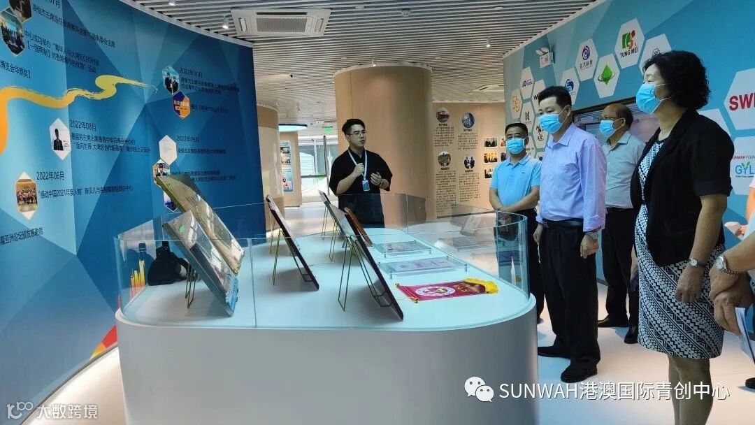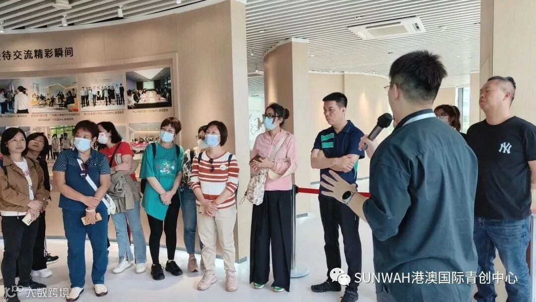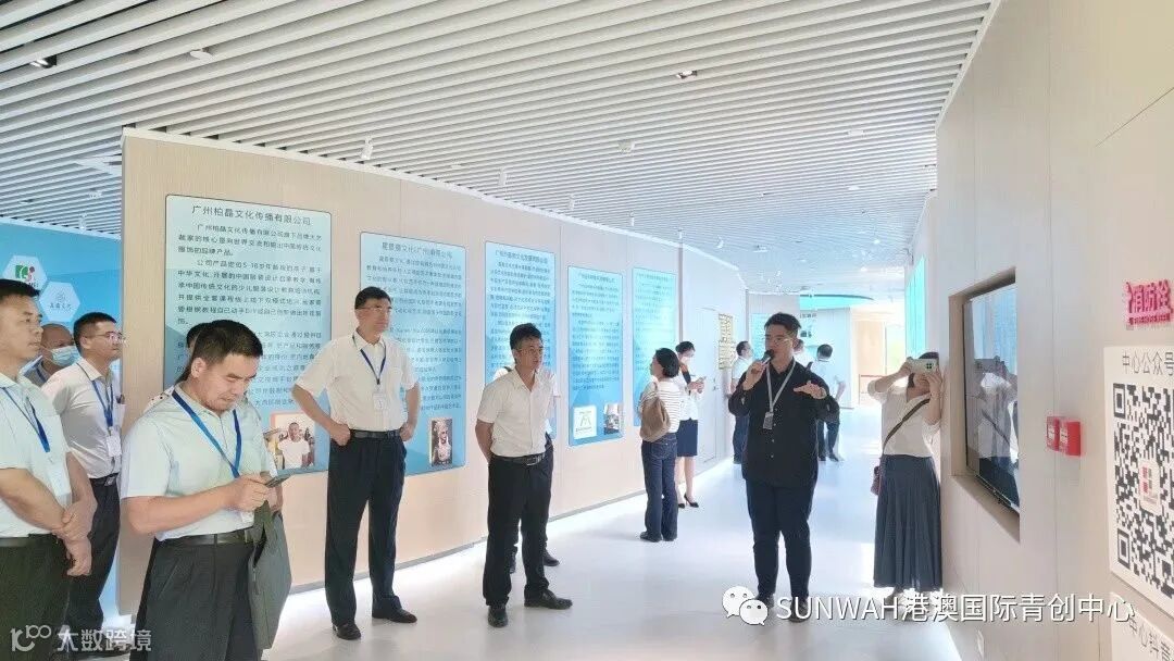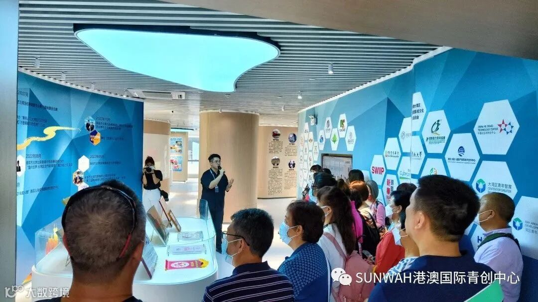 澳门工会联合总会一行莅临中心参观交流,在中心工作人员陪同下参观展厅,并深入了解中心当前的运营规划、对接资源及入驻项目发展情况。