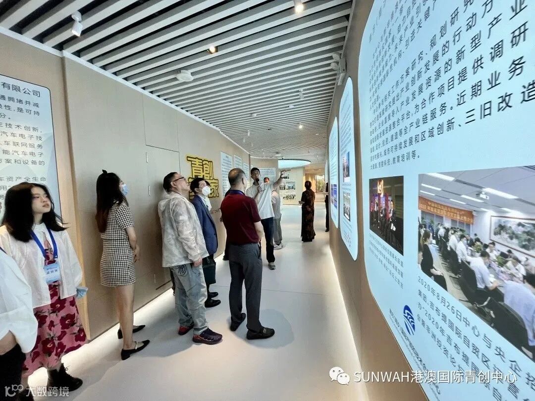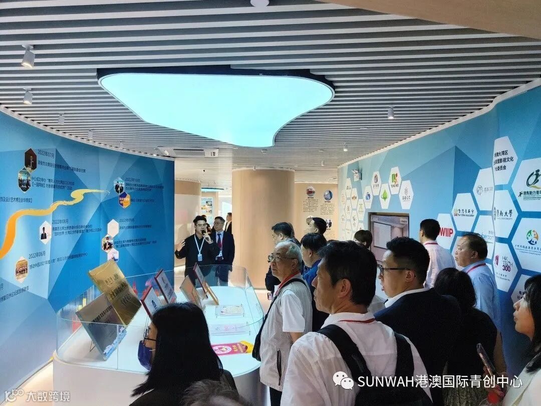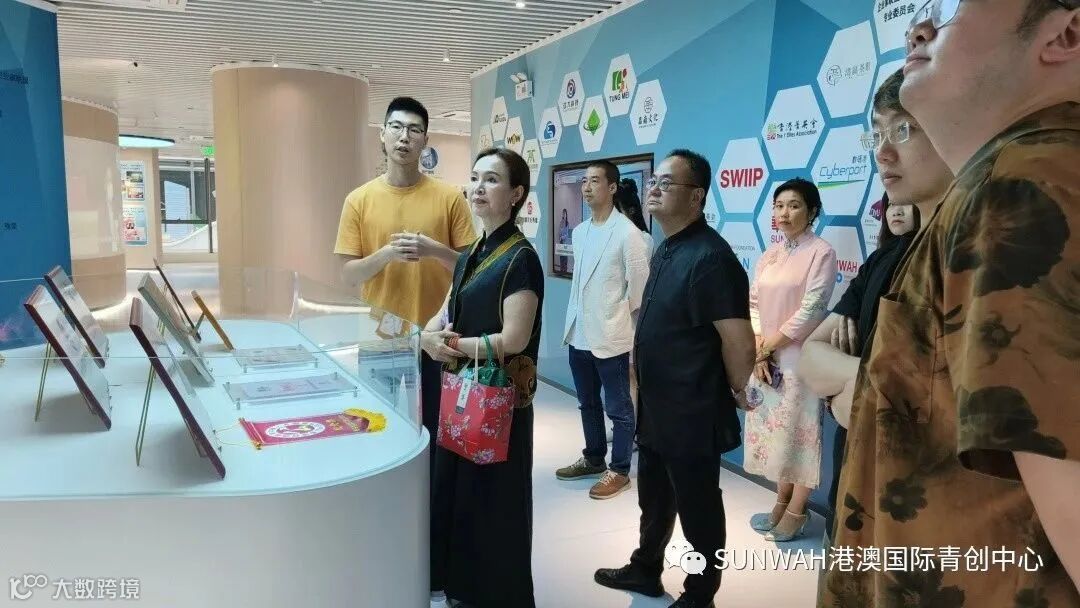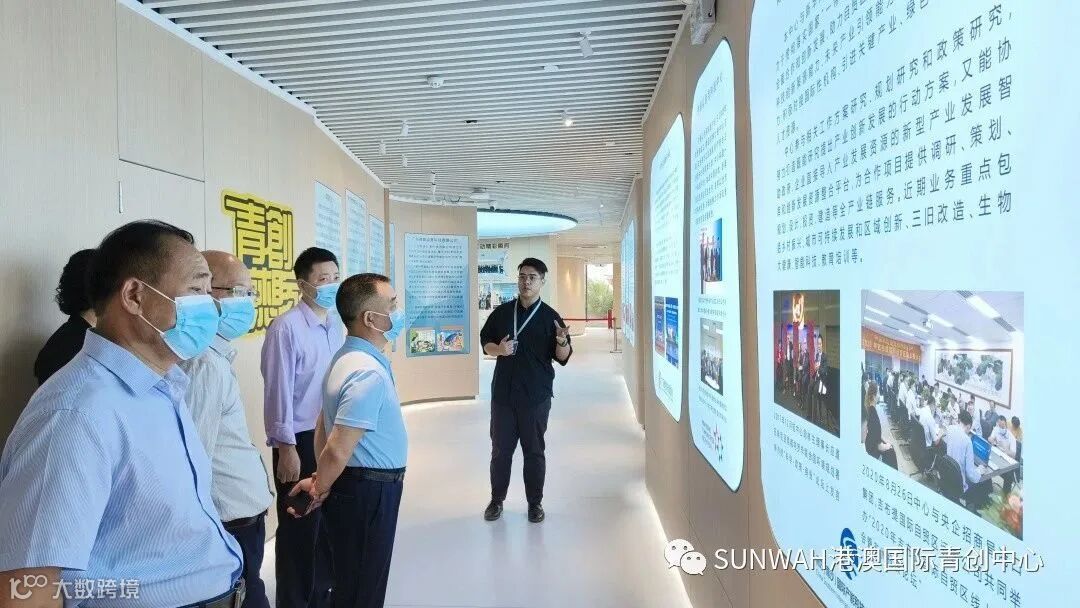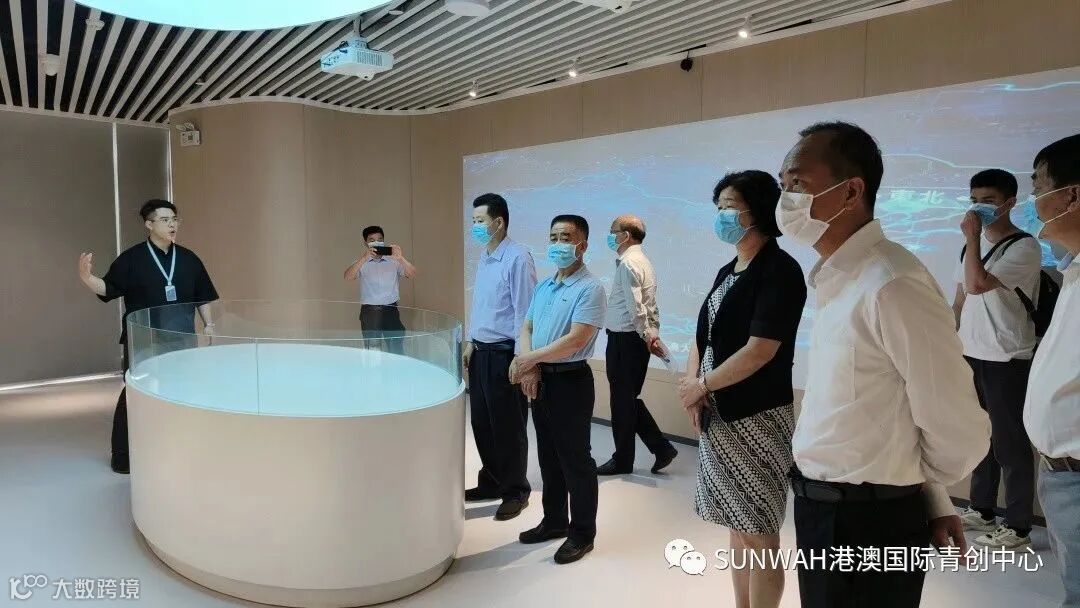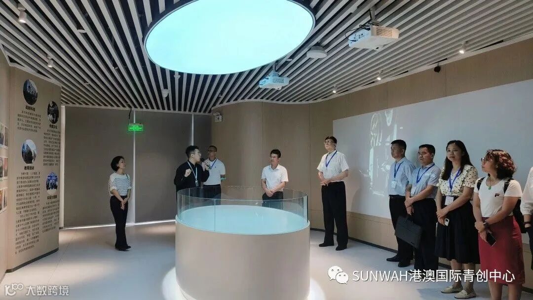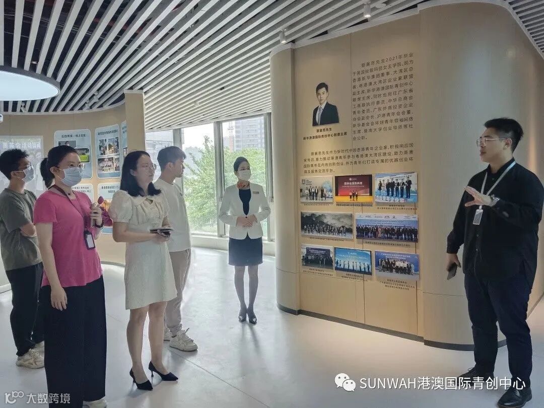 澳门工会联合总会一行莅临中心参观交流,在中心工作人员陪同下参观展厅,并深入了解中心当前的运营规划、对接资源及入驻项目发展情况。