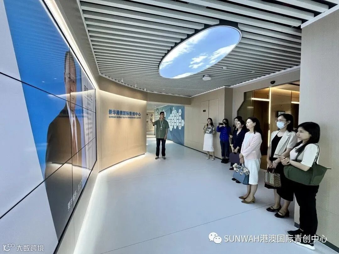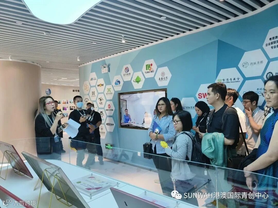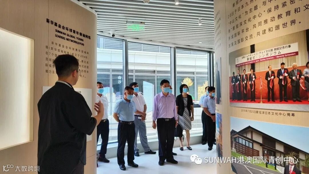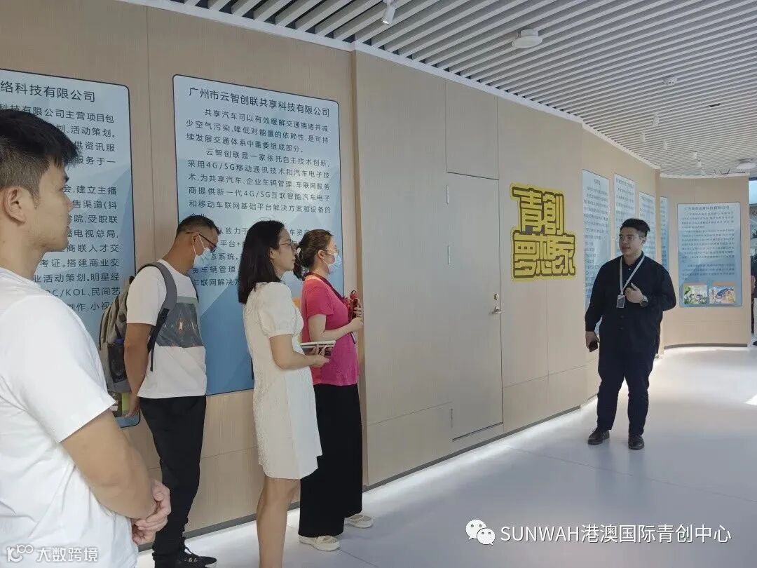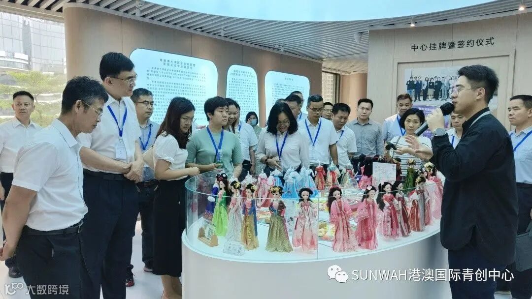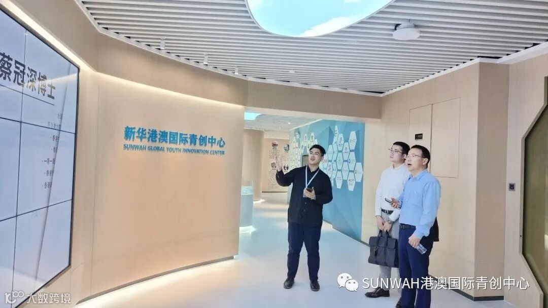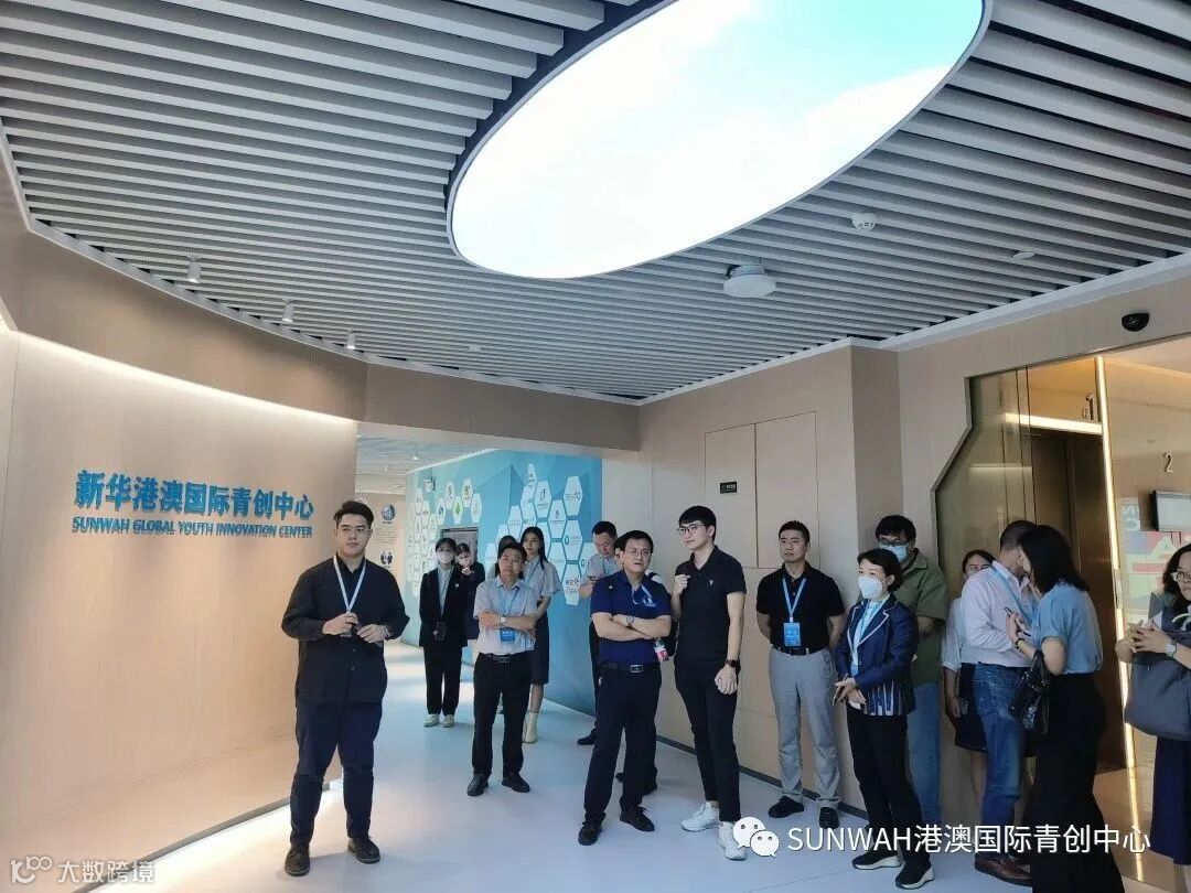 澳门工会联合总会一行莅临中心参观交流,在中心工作人员陪同下参观展厅,并深入了解中心当前的运营规划、对接资源及入驻项目发展情况。
