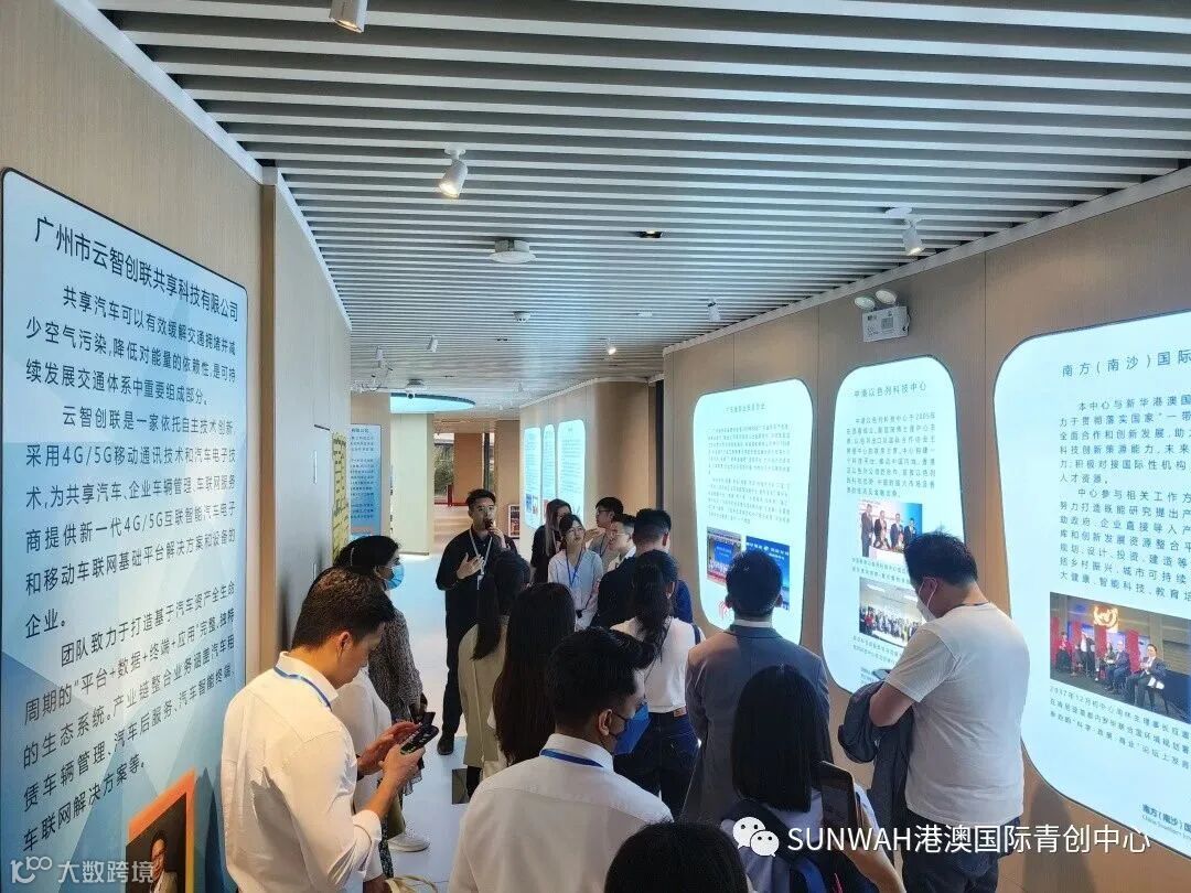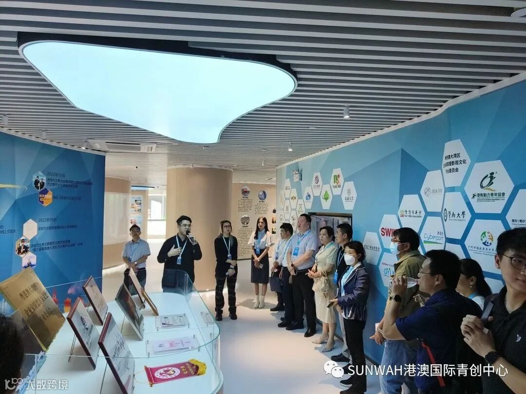 大湾区经贸协会考察团一行莅临中心参观交流,中心负责人蔡总陪同众人参观展厅,向各位介绍中心的创办理念、集团资源,表示本中心致力帮助更多港澳台侨国际创新创业青年立足南沙、协同港澳、面向世界。