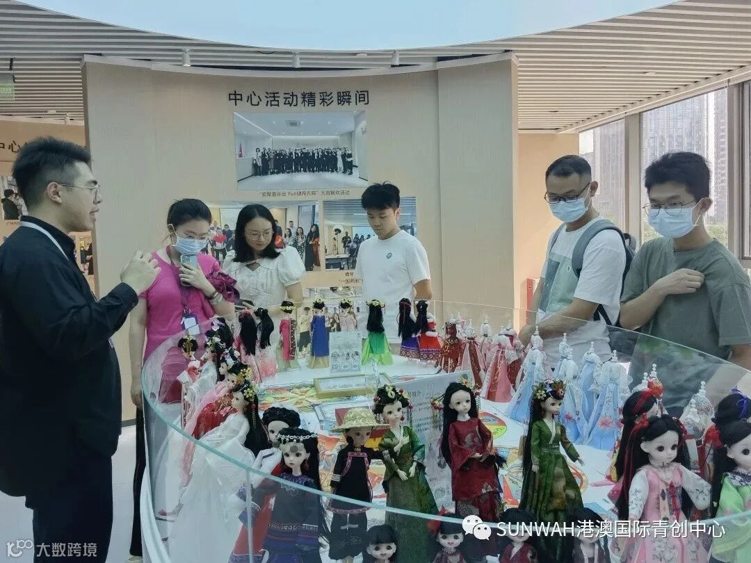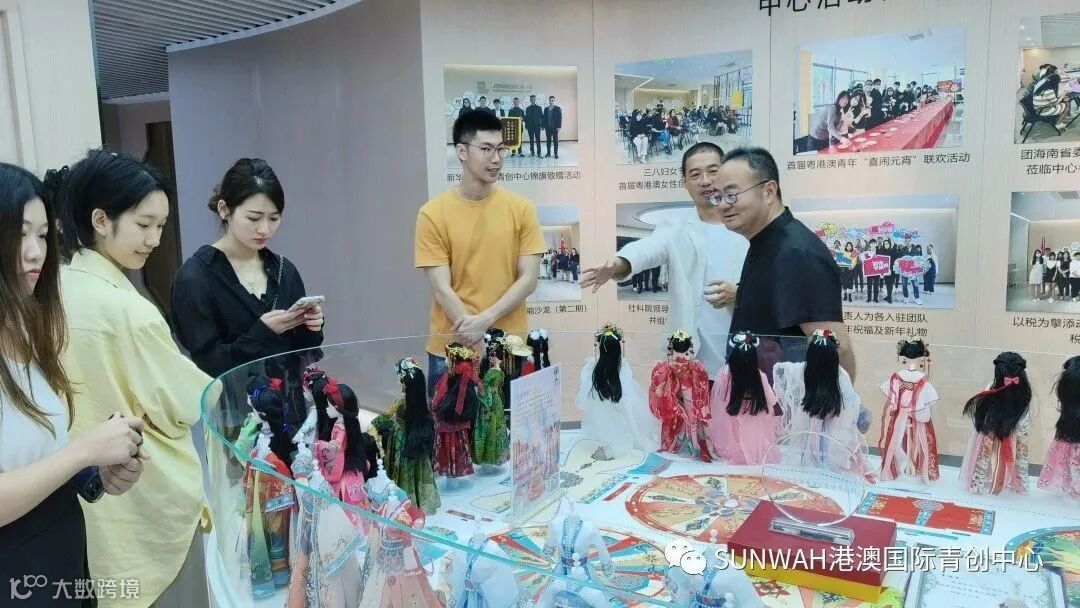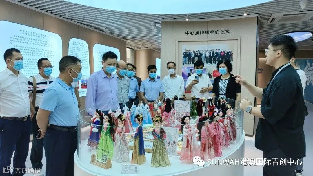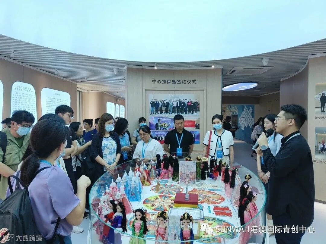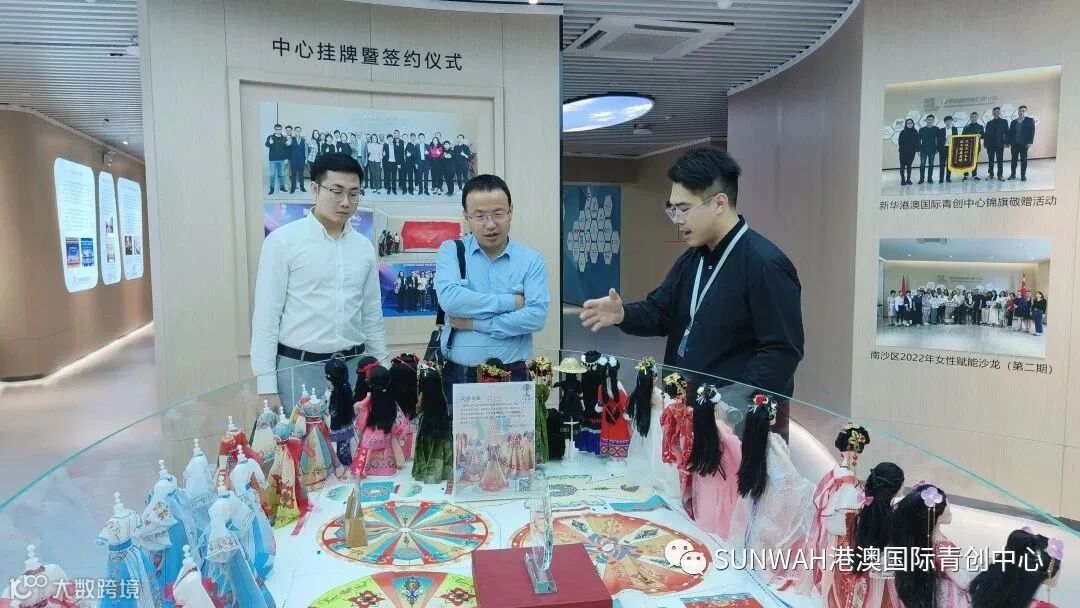 香云纱基地负责人一行到访中心参观交流,在中心工作人员的陪同下参观展厅并与入驻青创团队——广州柏晶文化传播有限公司创始人李柏亨先生进行深入交流。双方合作推出的“香云纱国潮娃娃”造型靓丽,以娃娃为载体的香云纱服饰设计恰到好处,能很好地传承非遗文化及弘扬优秀中华传统文化。