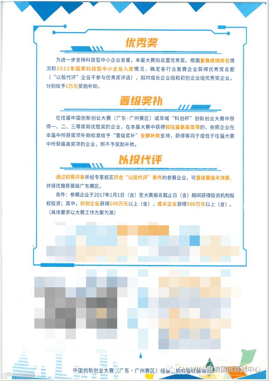 特别参赛名额(以投代评):2017年至今获得投资机构股权的——初创组100万元以上、成长组500万元以上。