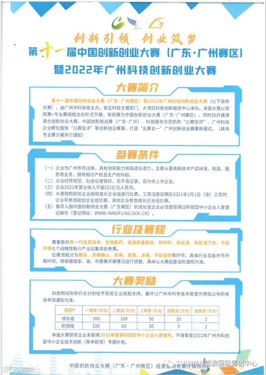 一年一度、万众瞩目的第十一届中国创新创业大赛(广东·广州赛区)暨2022年广州科技创新创业大赛现已启动报名!