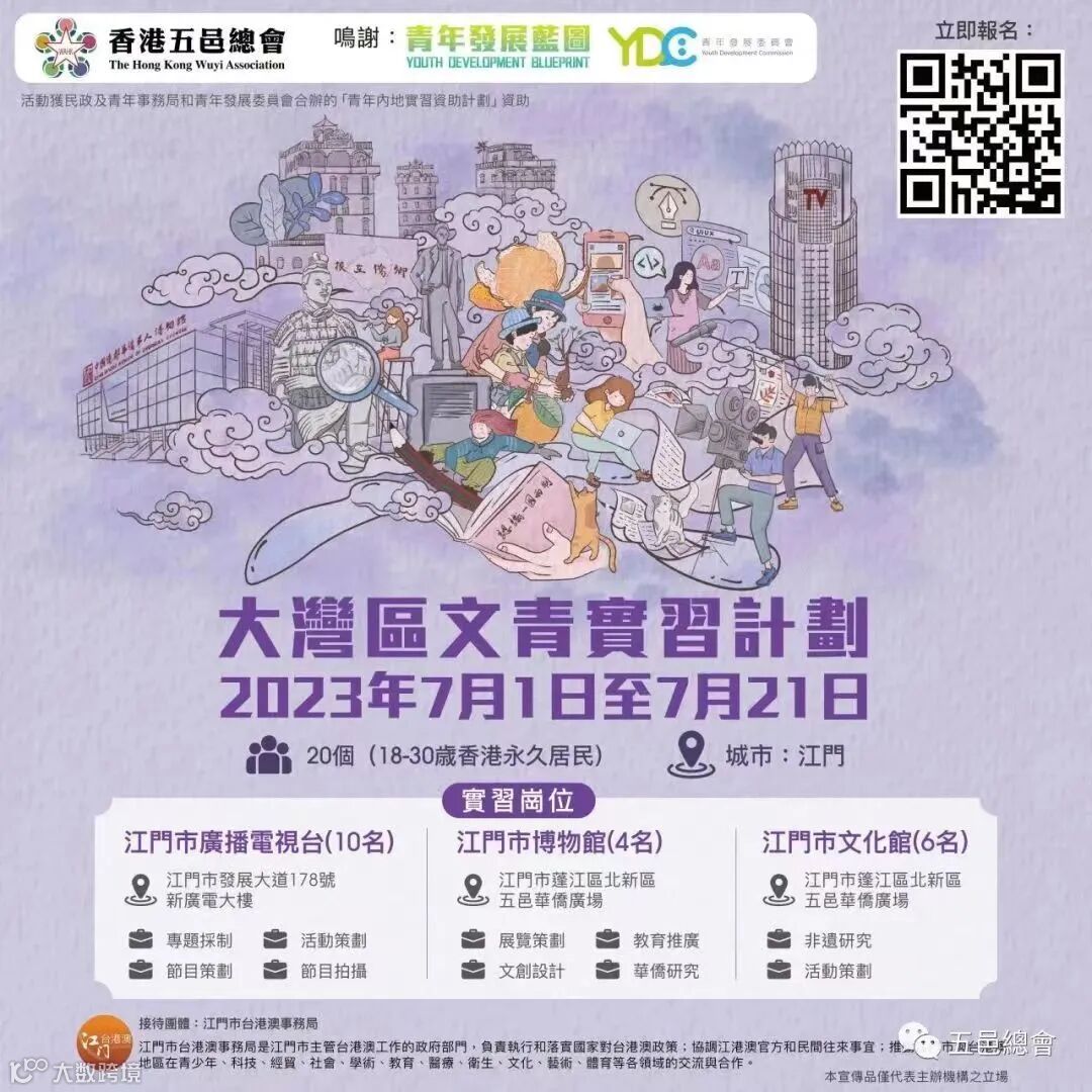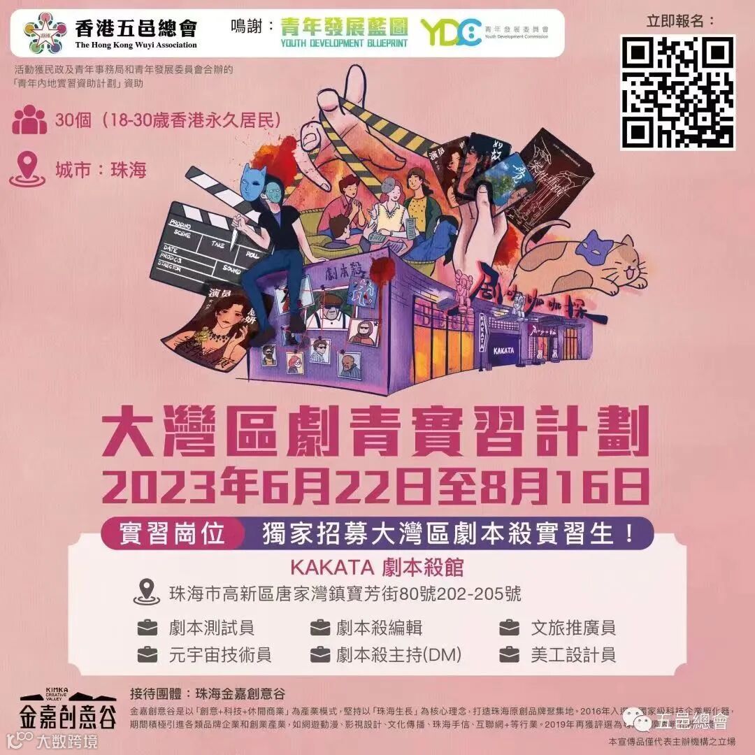 (香港五邑总会“大湾区文青实习计划”、“大湾区剧青实习计划”宣传图)