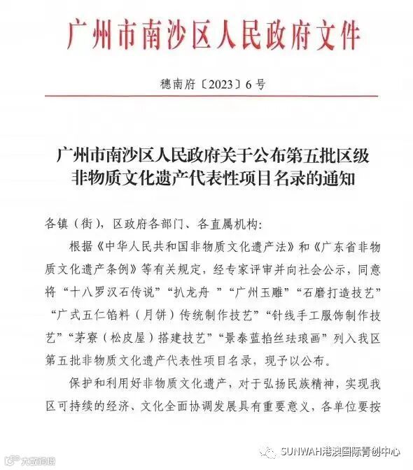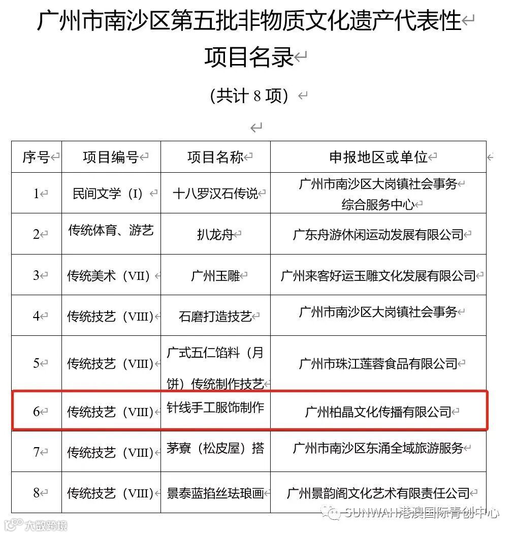近日,广州市南沙区人民政府发布的《广州市南沙区第五批非物质文化遗产代表性项目名录》新鲜出炉。其中,本中心入驻优秀香港团队——【广州柏晶文化传播有限公司】旗下的「国潮娃娃」针线手工服饰制作项目成功入选南沙区第五批非物质文化遗产代表性项目名录。