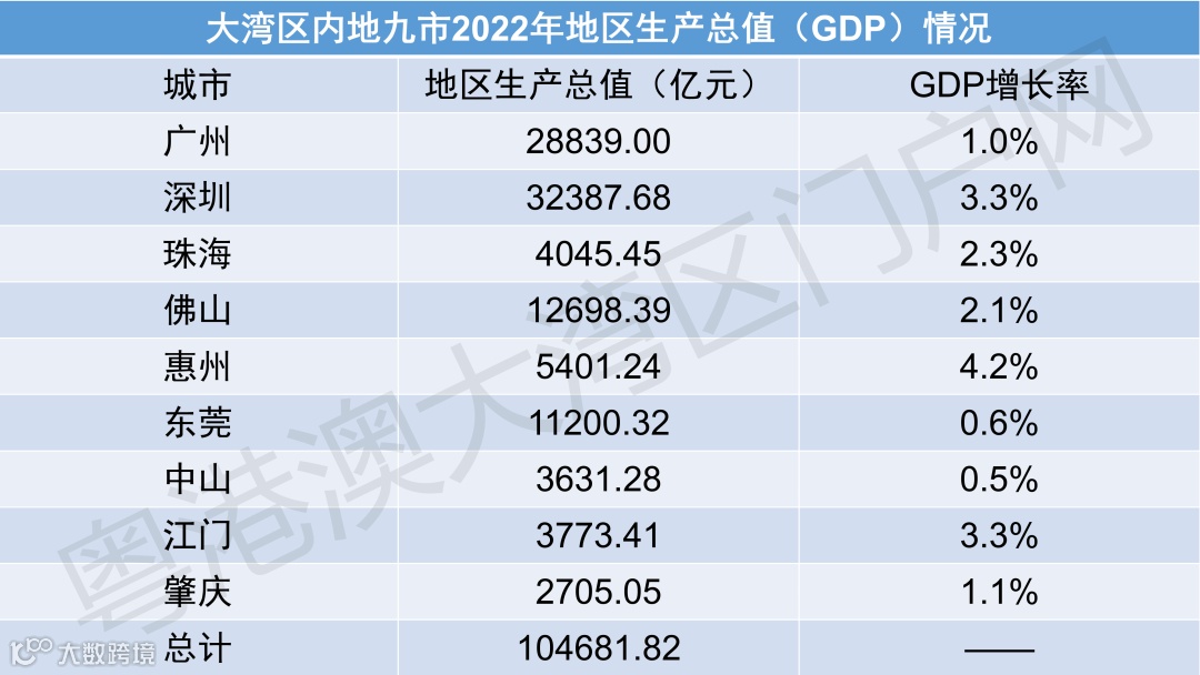 近日,粤港澳大湾区内地九市陆续公布2022年经济运行情况。结果显示,2022年粤港澳大湾区内地九市地区生产总值的总额超过10.46万亿!