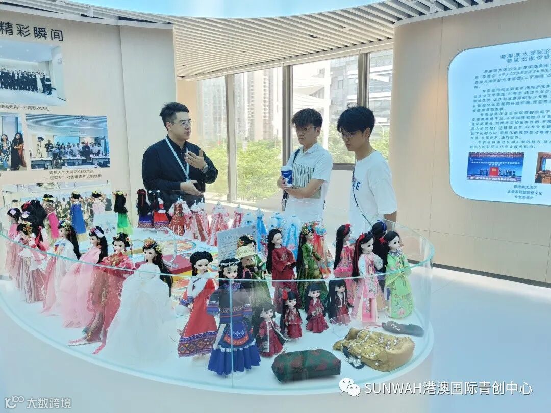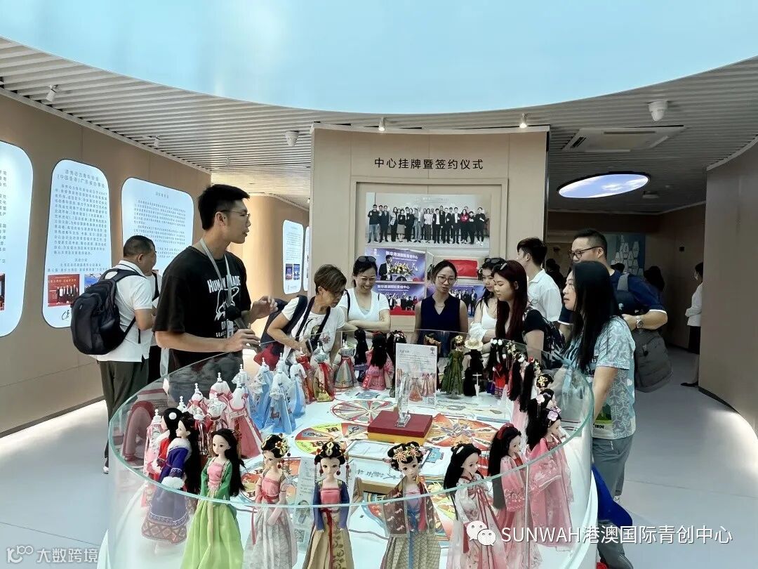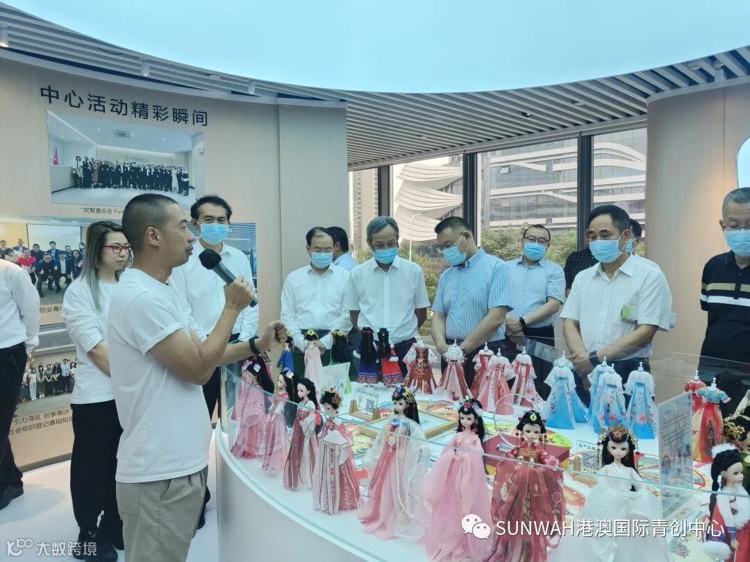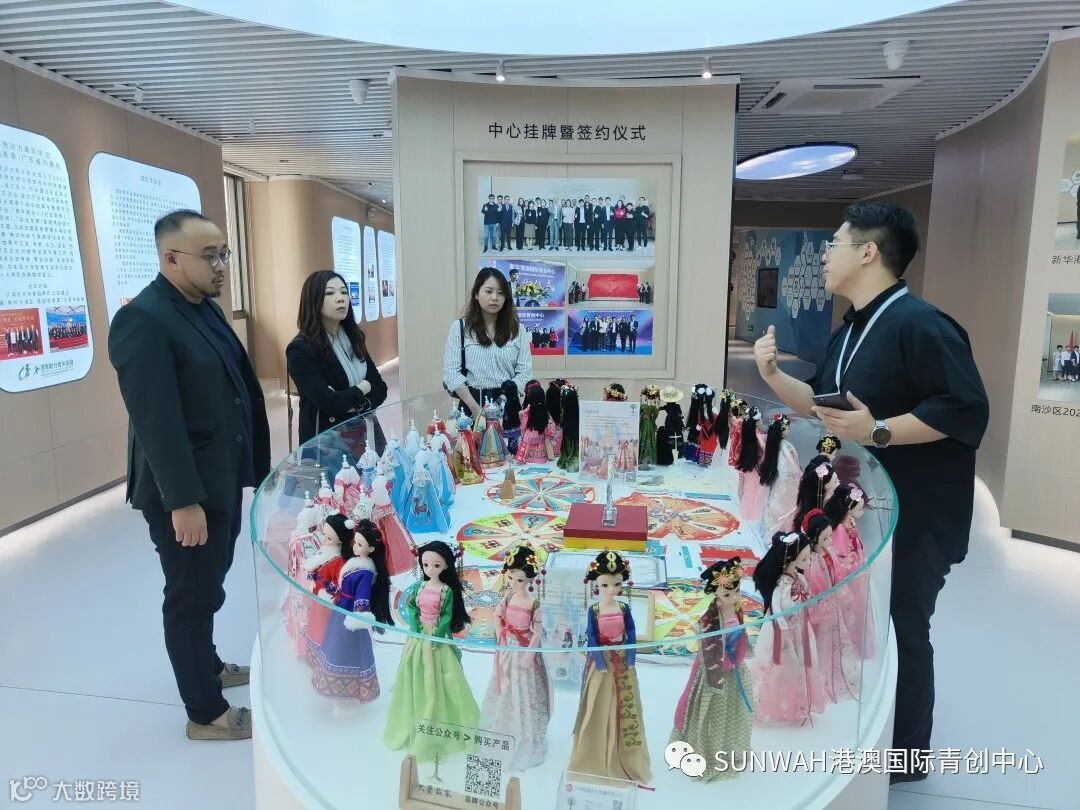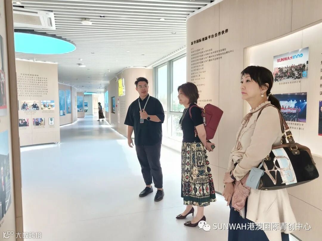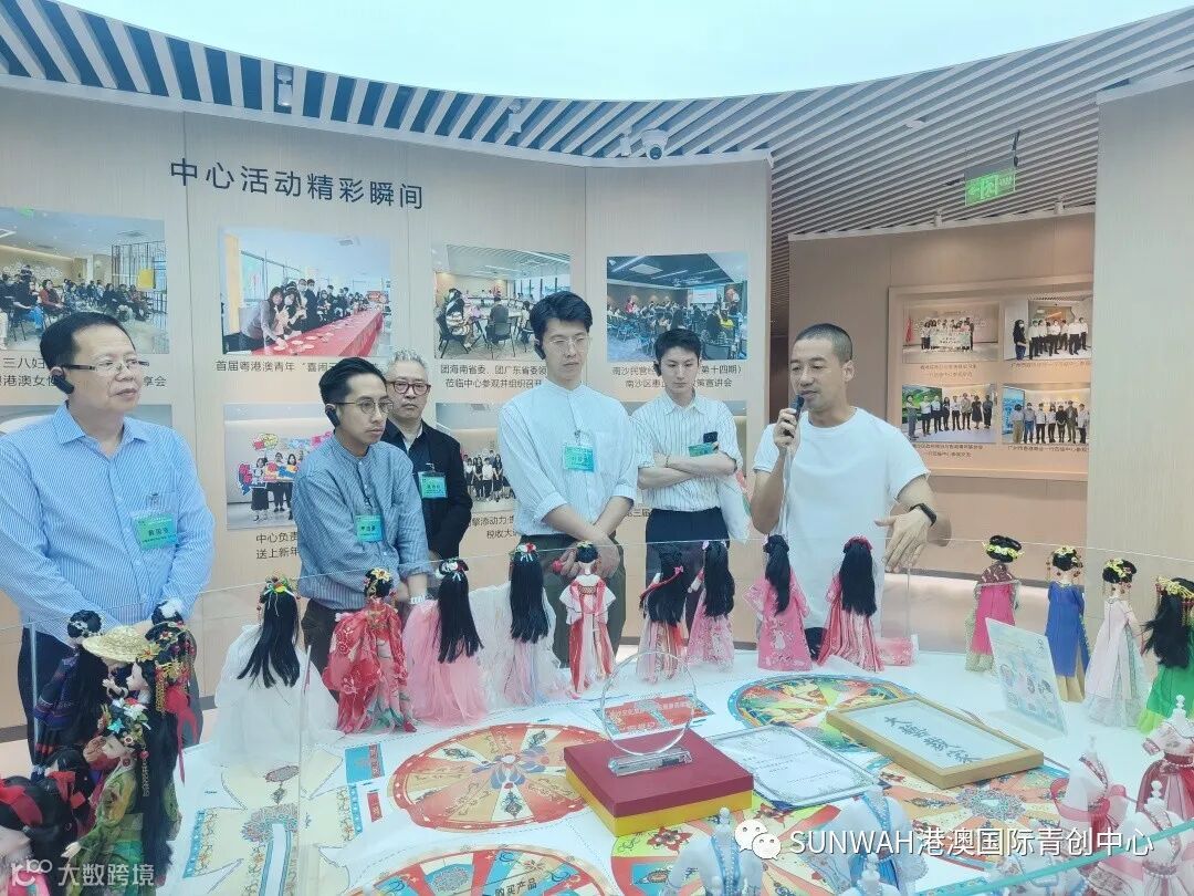 香港艺人蒋丽萍与加拿大华裔团队一行到访中心参观交流,中心负责人蔡总陪同众人参观展厅,并详细介绍本中心自正式揭牌运营至今的项目入驻及资源导入情况。