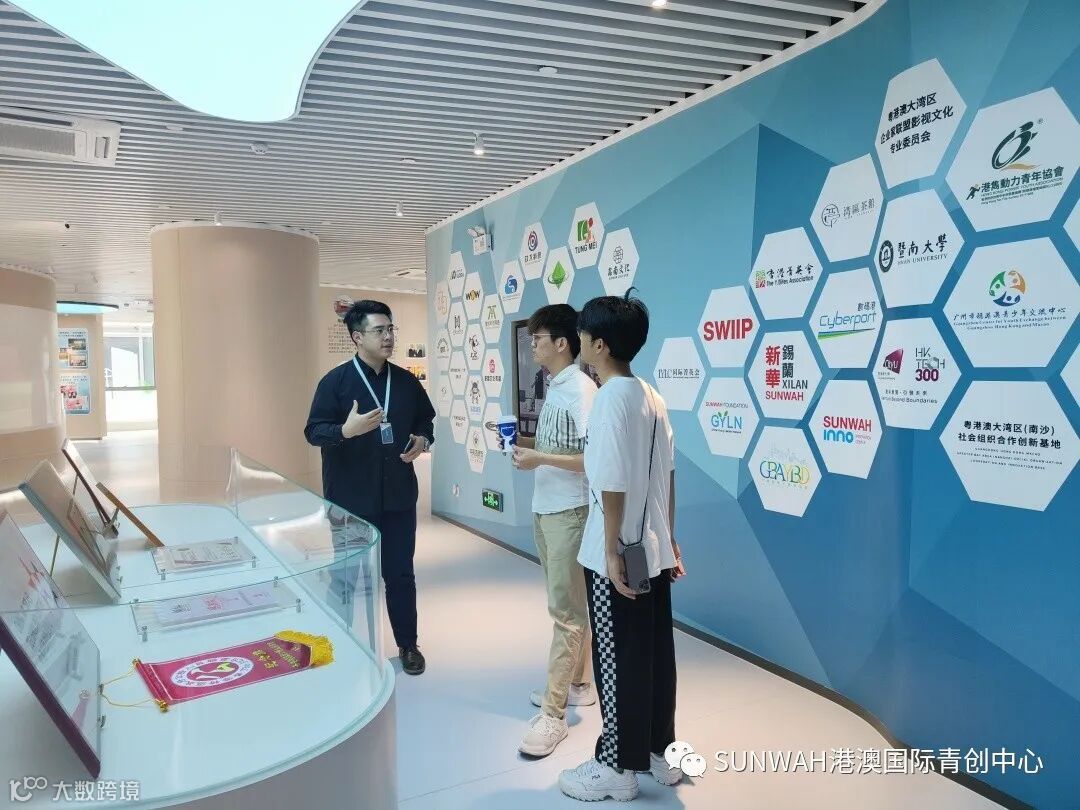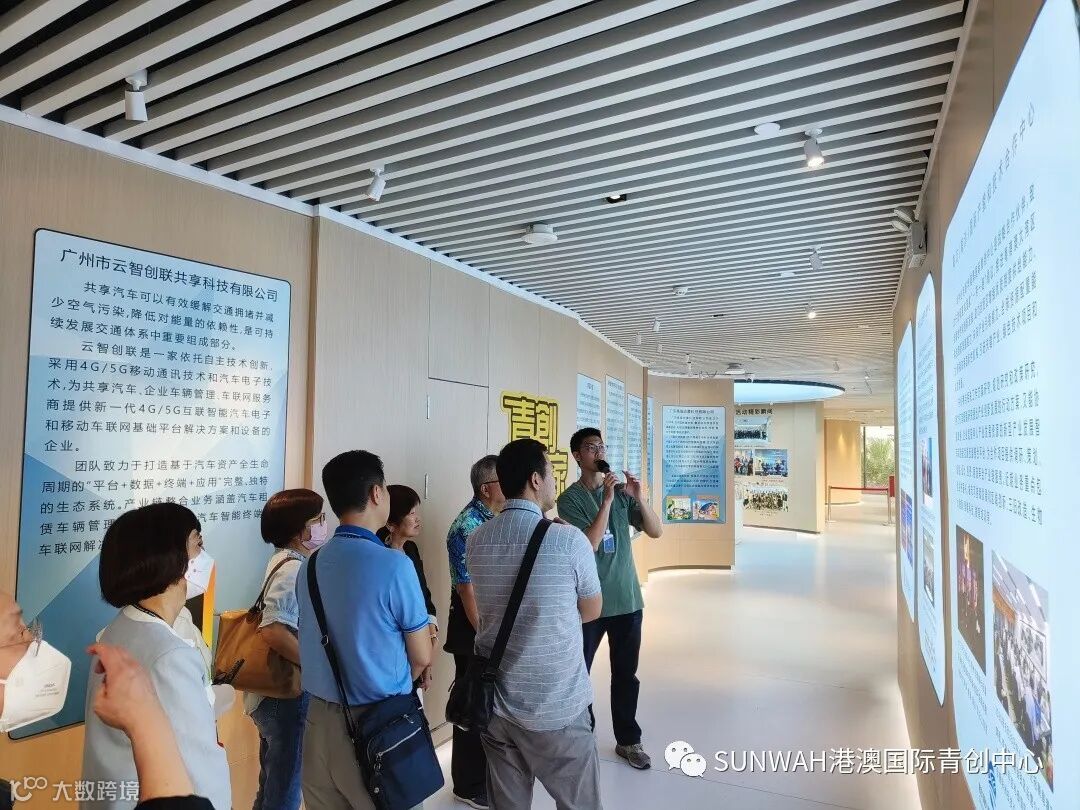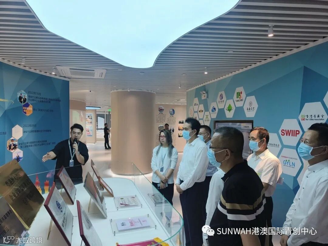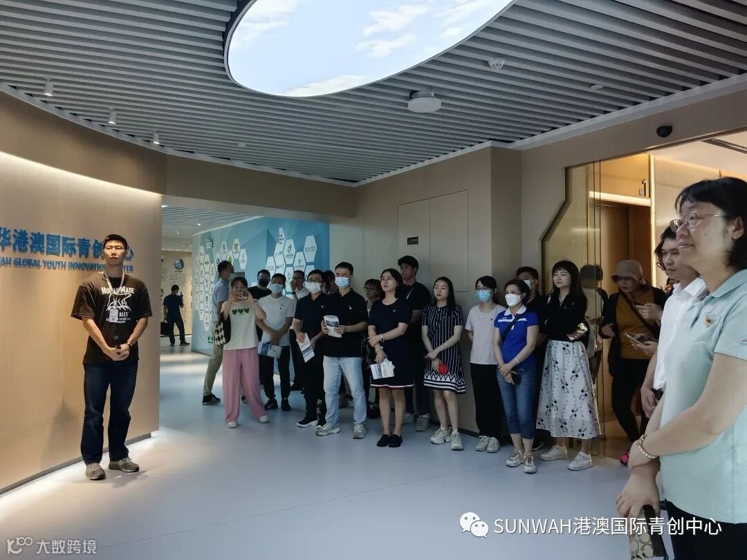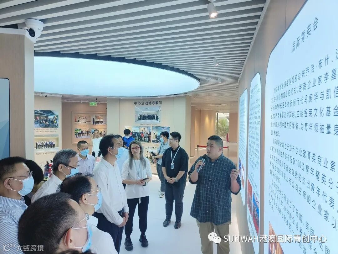 南沙区商务局组织香港商协会、服务业企业代表一行莅临中心参观交流,在中心负责人蔡总的陪同下到展厅进行参观并与入驻团队进行交流,蔡总表示希望中心利用好集团丰厚的优质资源把港澳台侨国际青年“引到南沙来”,再通过政府各式优惠政策引导及中心专业创新创业服务,成功帮助他们“走向世界去”。