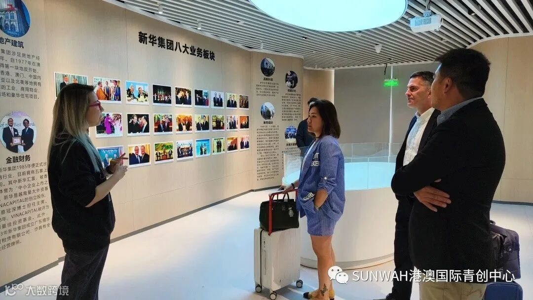 新华集团澳门团队一行莅临中心参观交流,中心工作人员陪同众人参观展厅,并详细介绍了中心运营情况、项目对接及资源导入的优势项目。随后前往会议室开展内部会议。