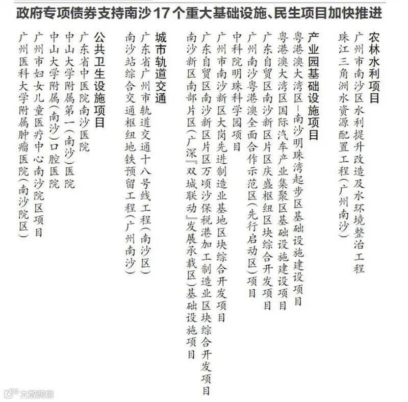据了解,对广州而言,专项债是广州重大项目建设最主要的资金来源之一,也是促进有效投资的最重要抓手。今年,广州继续加大对南沙的支持力度,在国家、省定向安排南沙区100亿元地方政府专项债券额度的基础上,再安排约145亿元用于南沙区重大项目建设,全年南沙区共发行债券额度245亿元,占比全市最高,有力支持南沙明珠湾起步区、庆盛枢纽区块、省中医院南沙医院等17个重大基础设施、民生项目加快推进。南沙区发改局相关负责人表示,目前,专项债政策对南沙发展意义重大,目前这17个项目已全部开工建设。