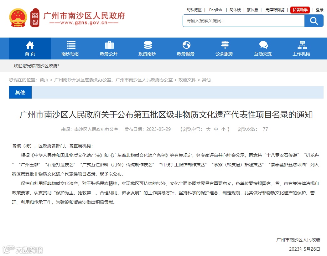 近日,南沙区第五批区级非物质文化遗产(以下简称“非遗”)代表性项目名录、第八批广州市级非遗代表性传承人名单陆续公布,南沙再增一批非遗代表性项目及传承人,其中包括2名市级非遗代表性传承人和8个区级非遗代表性项目。