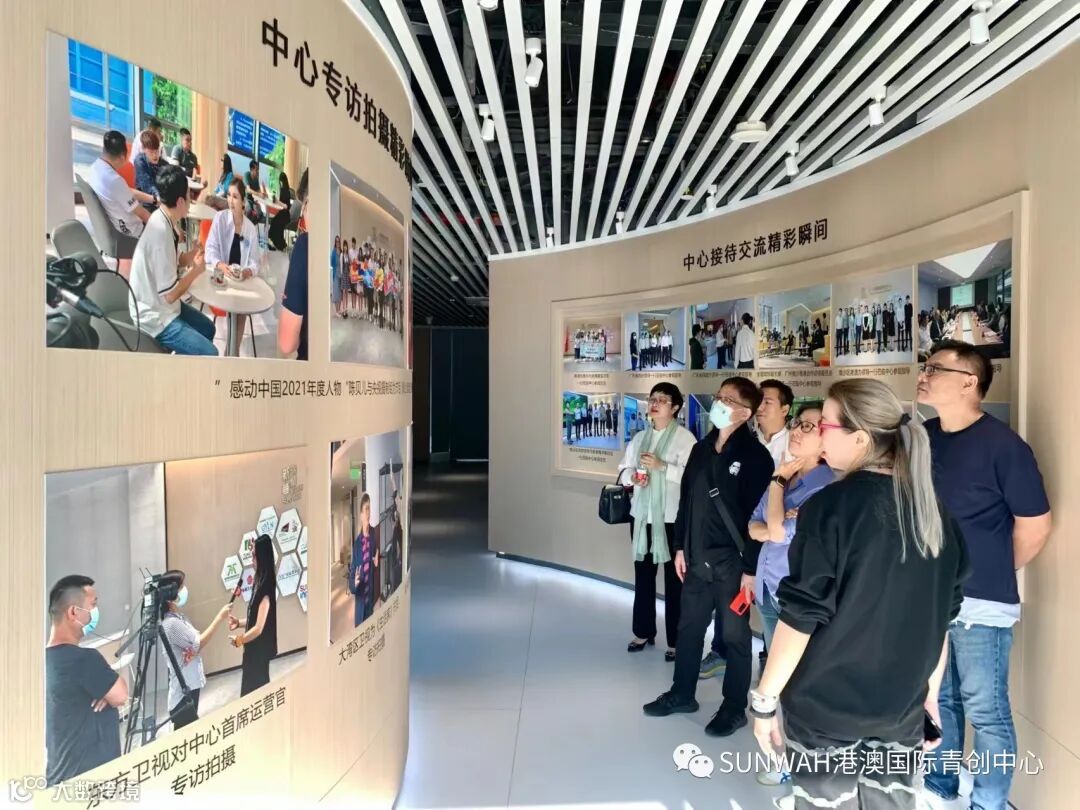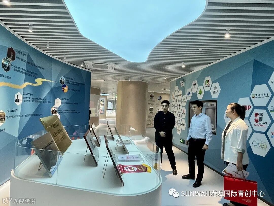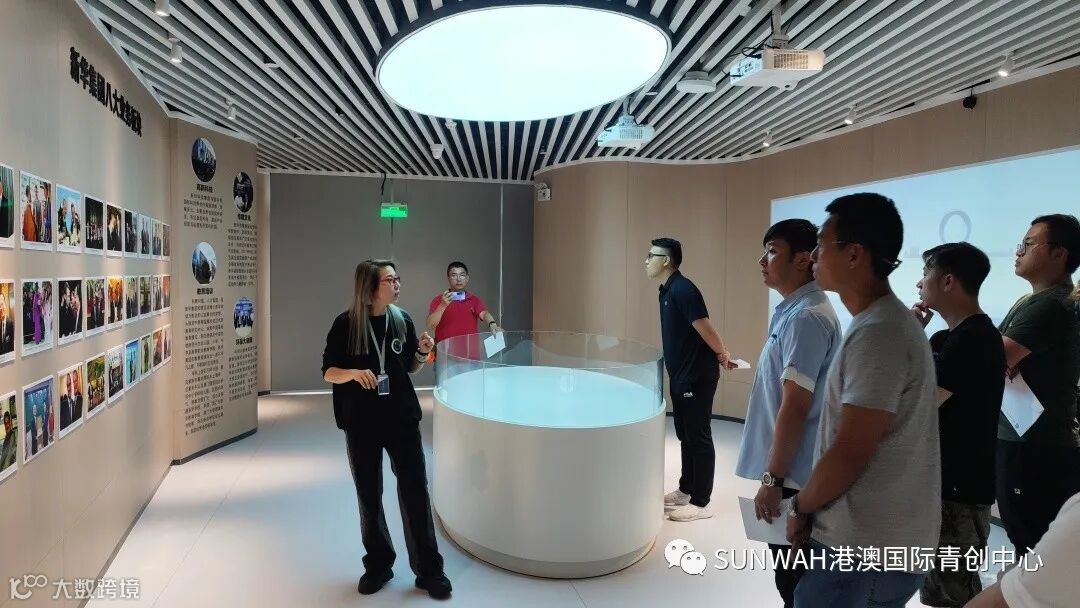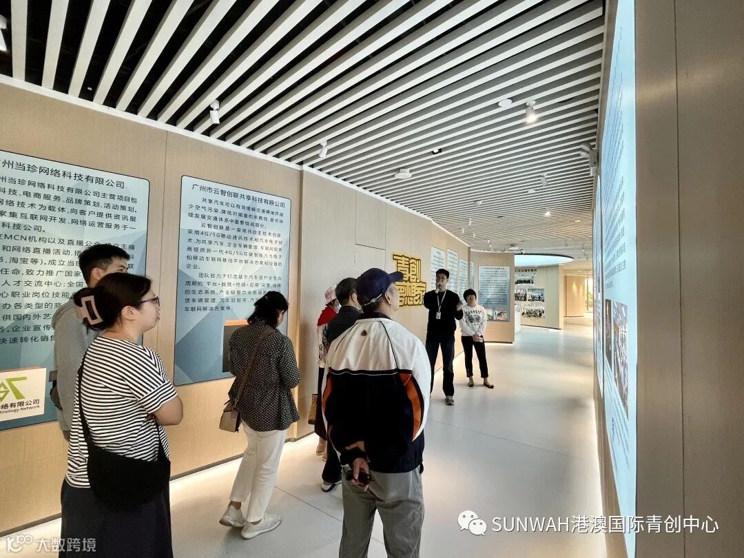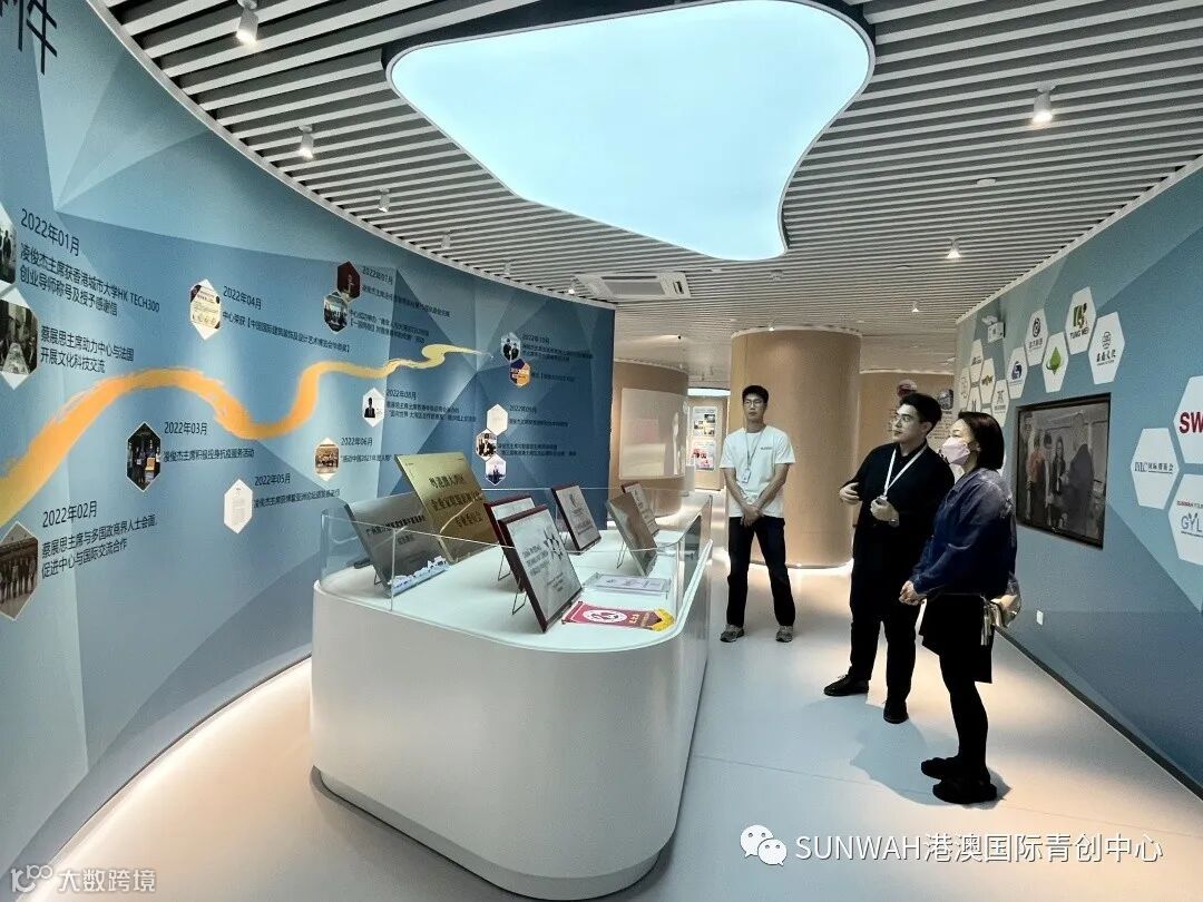 香港创业青年到访中心参观交流,在中心工作人员陪同下参观展厅,对中心运营、项目入驻等情况进行了详细了解。随后双方前往三楼进行进一步交流。