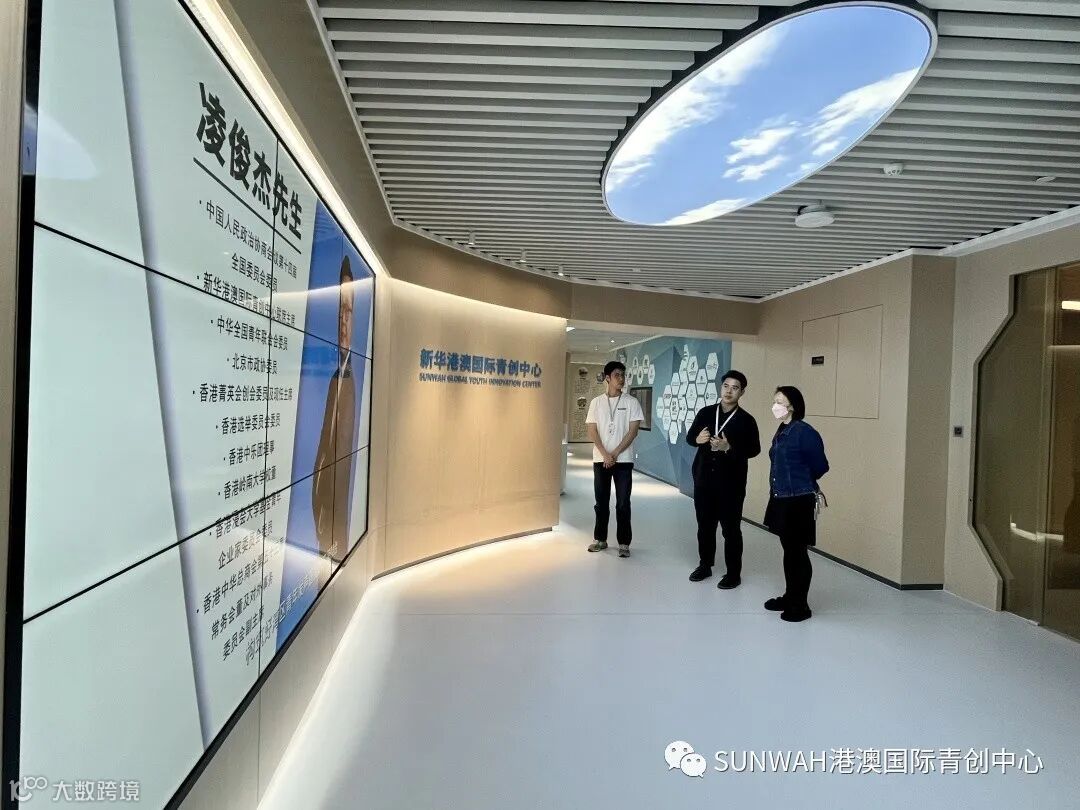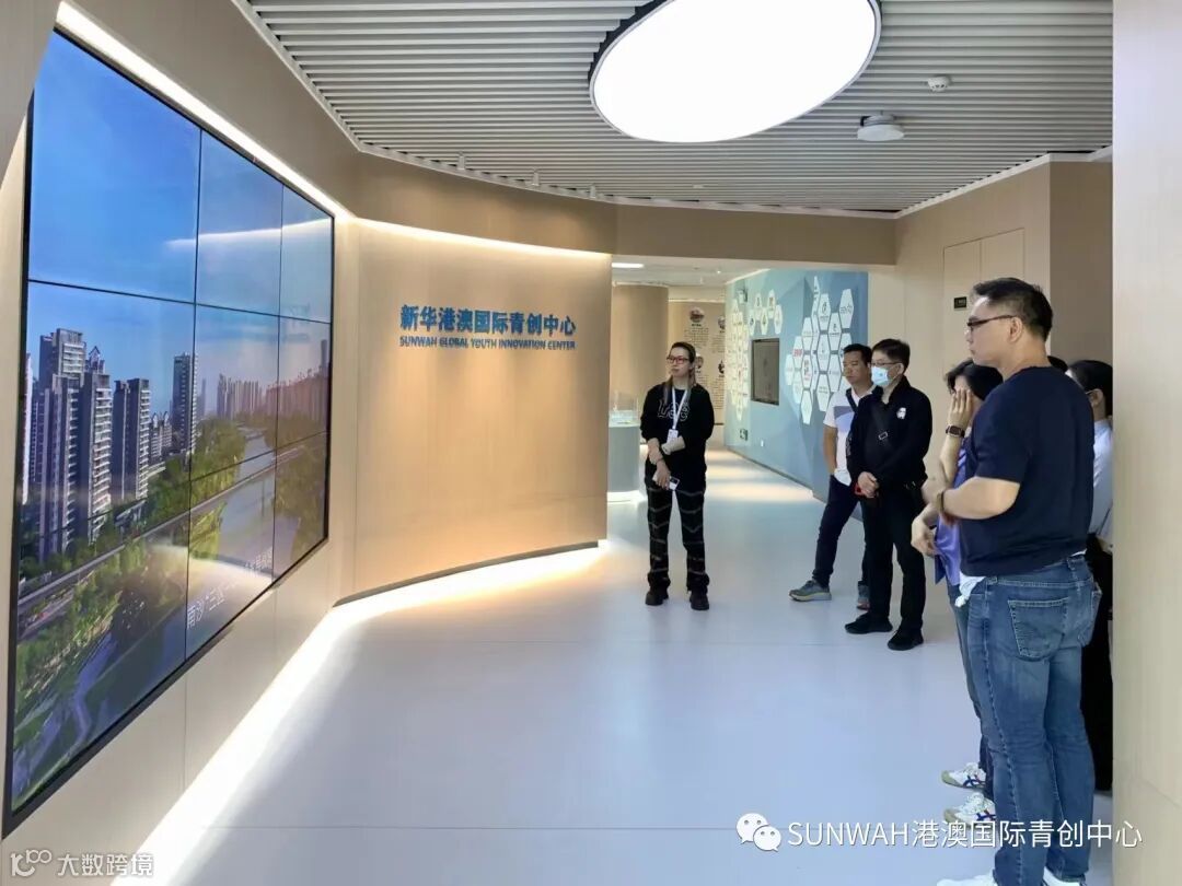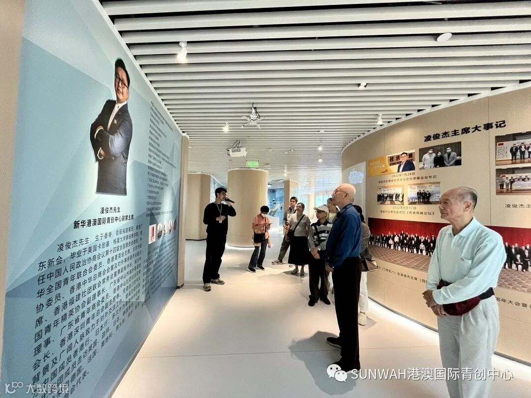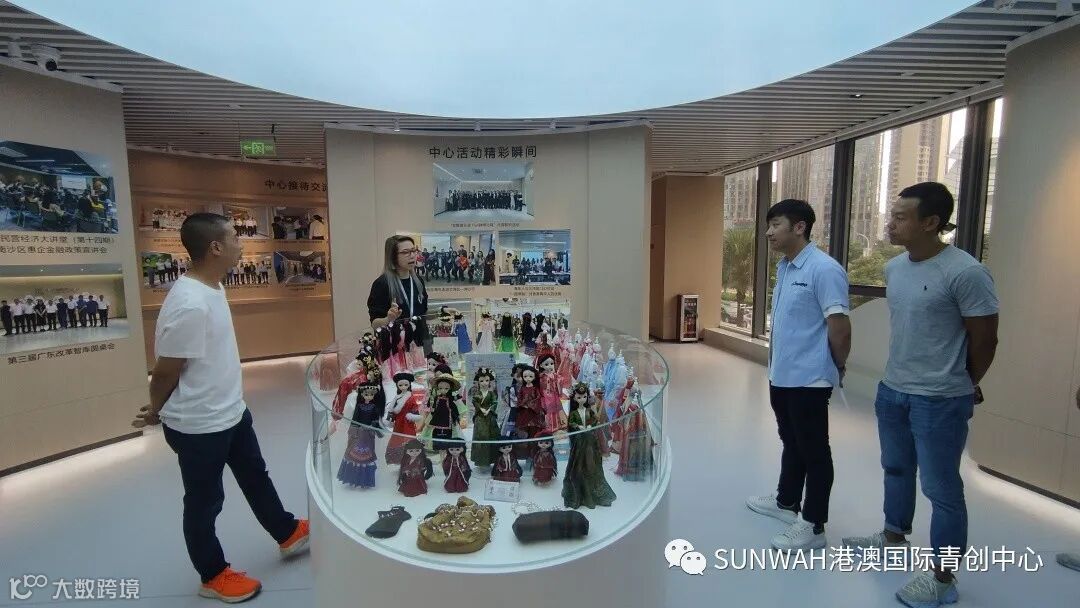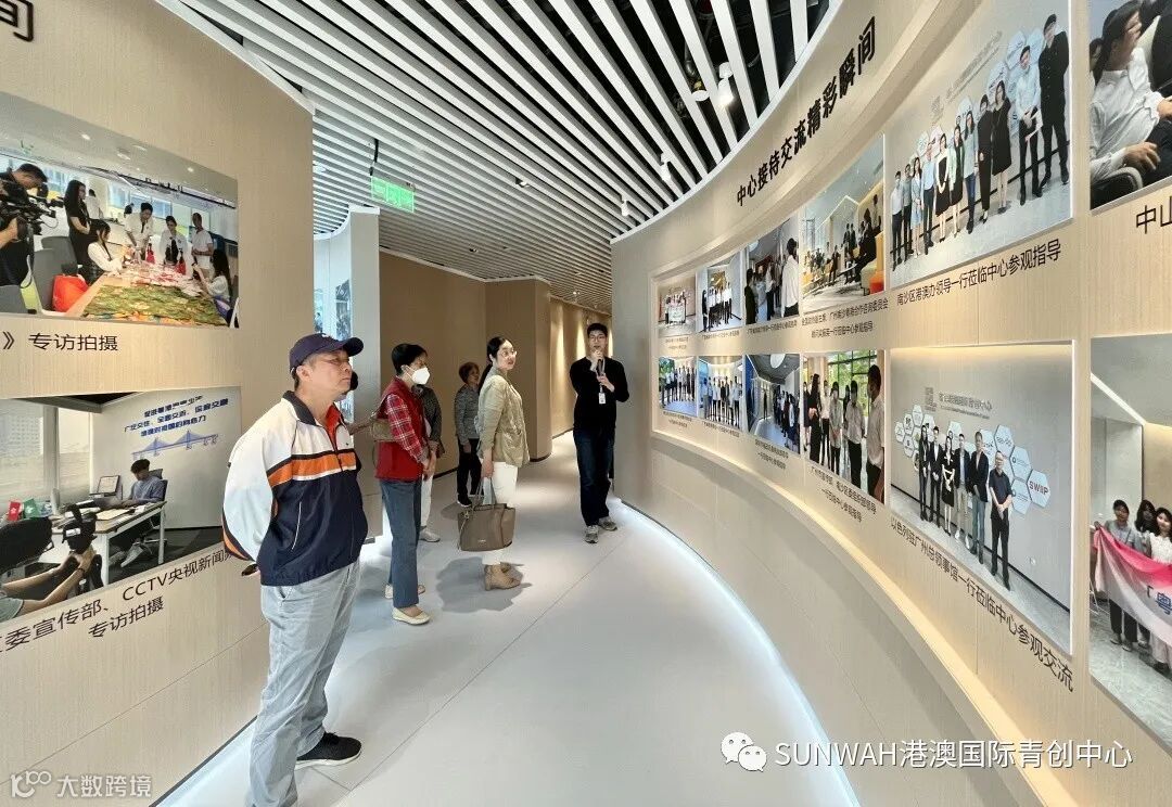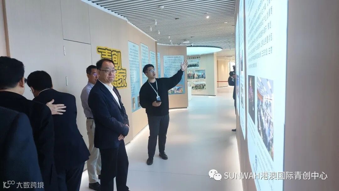 香港创业青年到访中心参观交流,在中心工作人员陪同下参观展厅,对中心运营、项目入驻等情况进行了详细了解。随后双方前往三楼进行进一步交流。