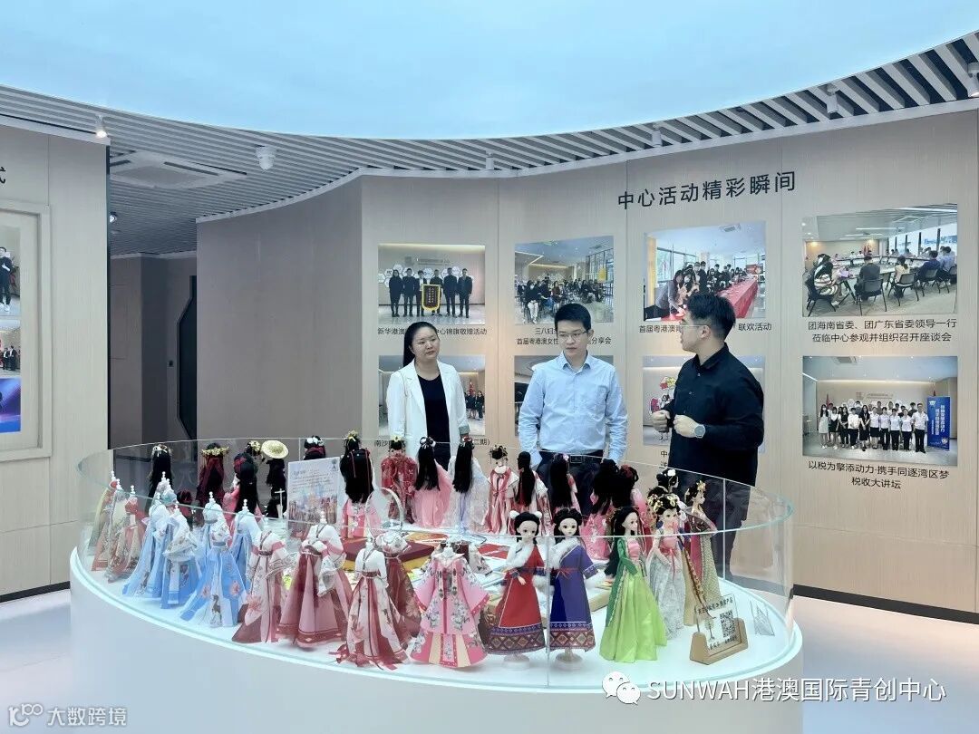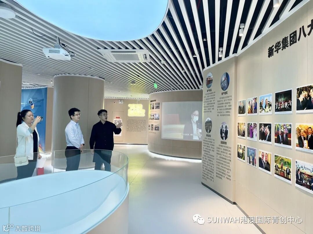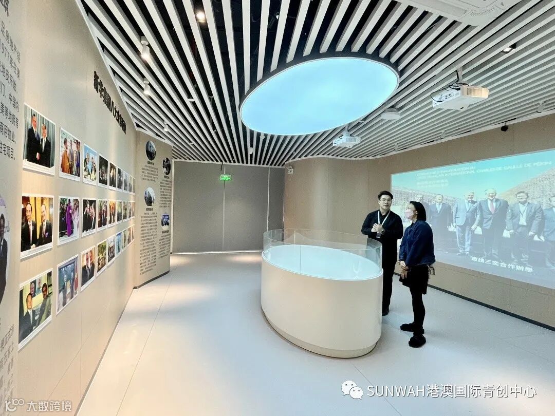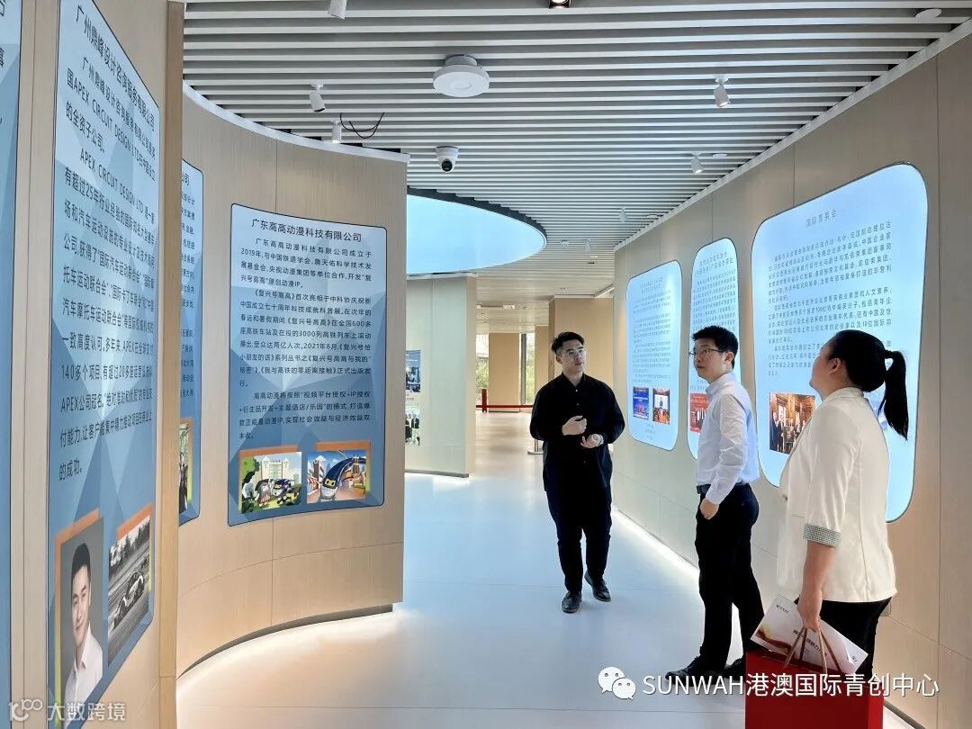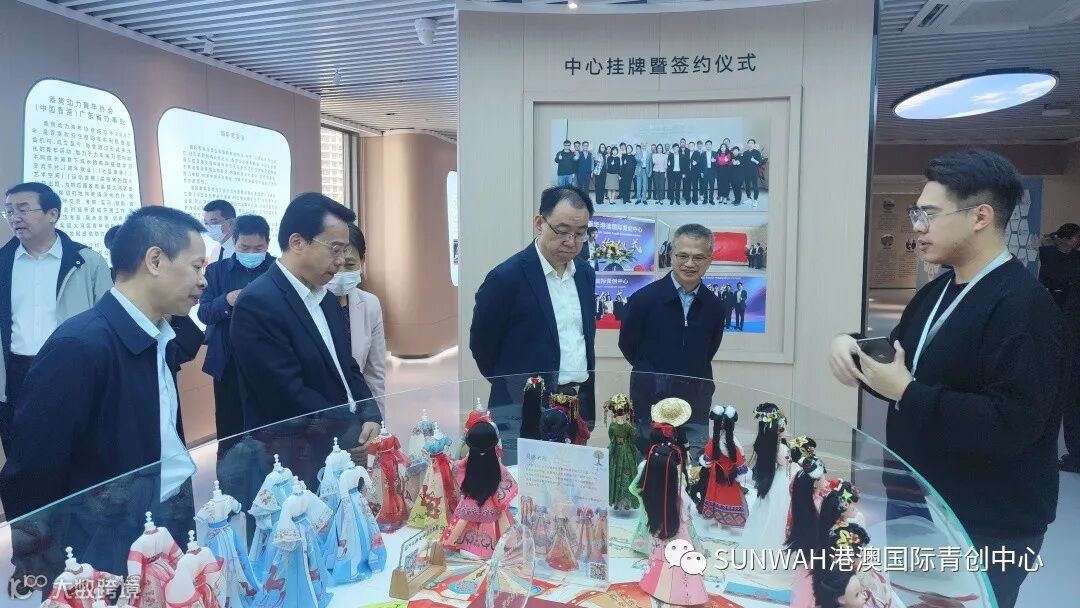 香港创业青年到访中心参观交流,在中心工作人员陪同下参观展厅,对中心运营、项目入驻等情况进行了详细了解。随后双方前往三楼进行进一步交流。