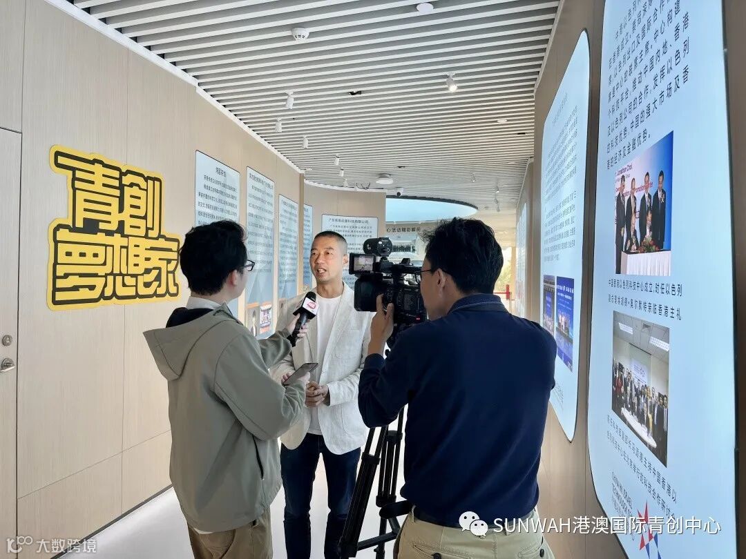 广州广播电视台拍摄组莅临本中心采访拍摄,采访广州柏晶文化传播有限公司创始人李柏亨先生及本中心负责人蔡纯真女士,宣传港澳青年在粤港澳大湾区的创业故事,让更多人了解港澳创业青年在大湾区优越的创业环境。