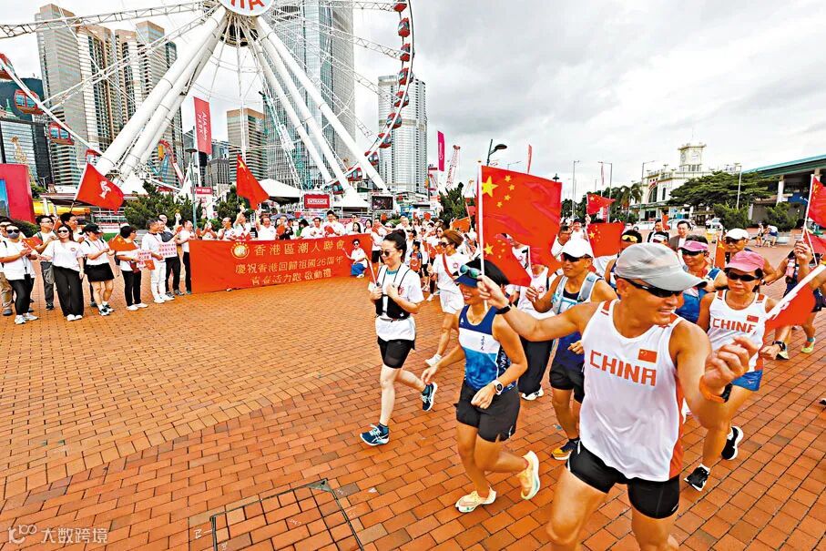 “庆祝香港回归祖国26周年——青春活力跑”7月2日在港岛举办,逾百青年参与。