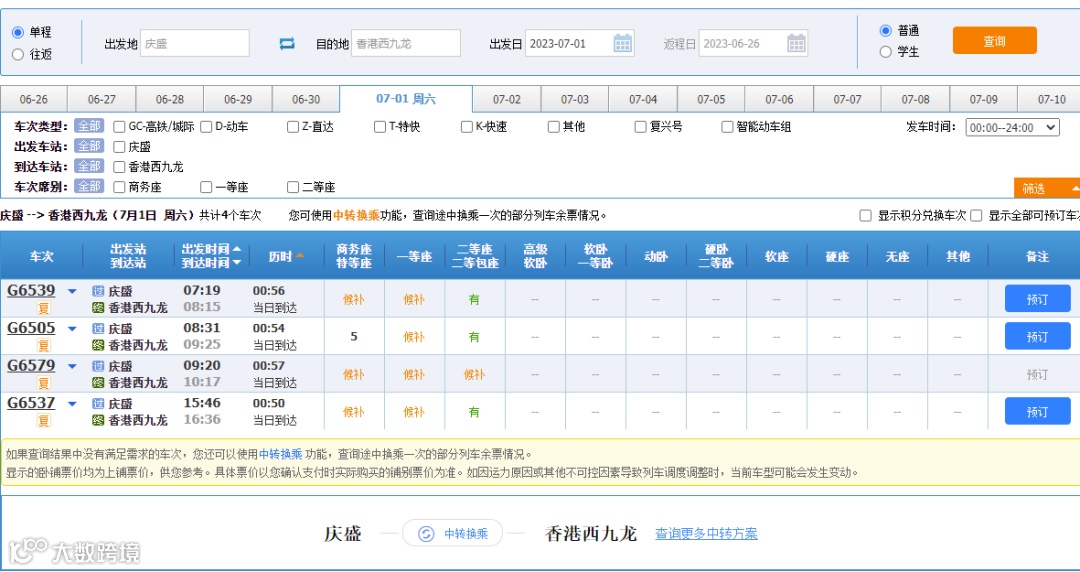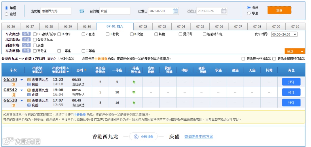 为进一步强化南沙和香港联动,方便两地人文、科技、商务等各方面交流,南沙区交通运输局会同庆盛高铁站积极调研,响应群众出行期盼,计划于2023年7月1日起进一步增加经停庆盛站高铁班次至21趟(较疫情前增加6趟),其中庆盛站至香港西九龙高铁班次增加至7趟(较疫情前增加4趟),届时南沙与香港往来将更加便捷,为南沙建设湾区交通中心增添新动能。