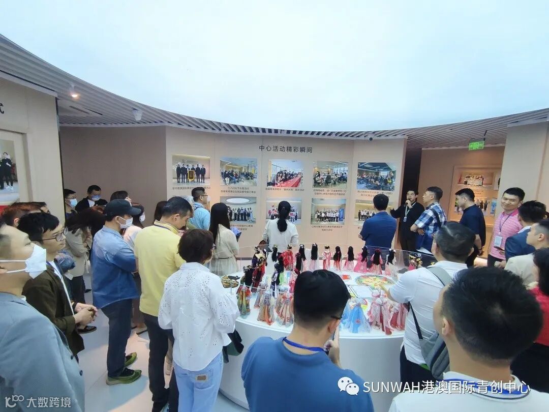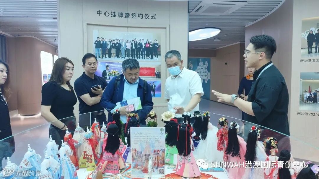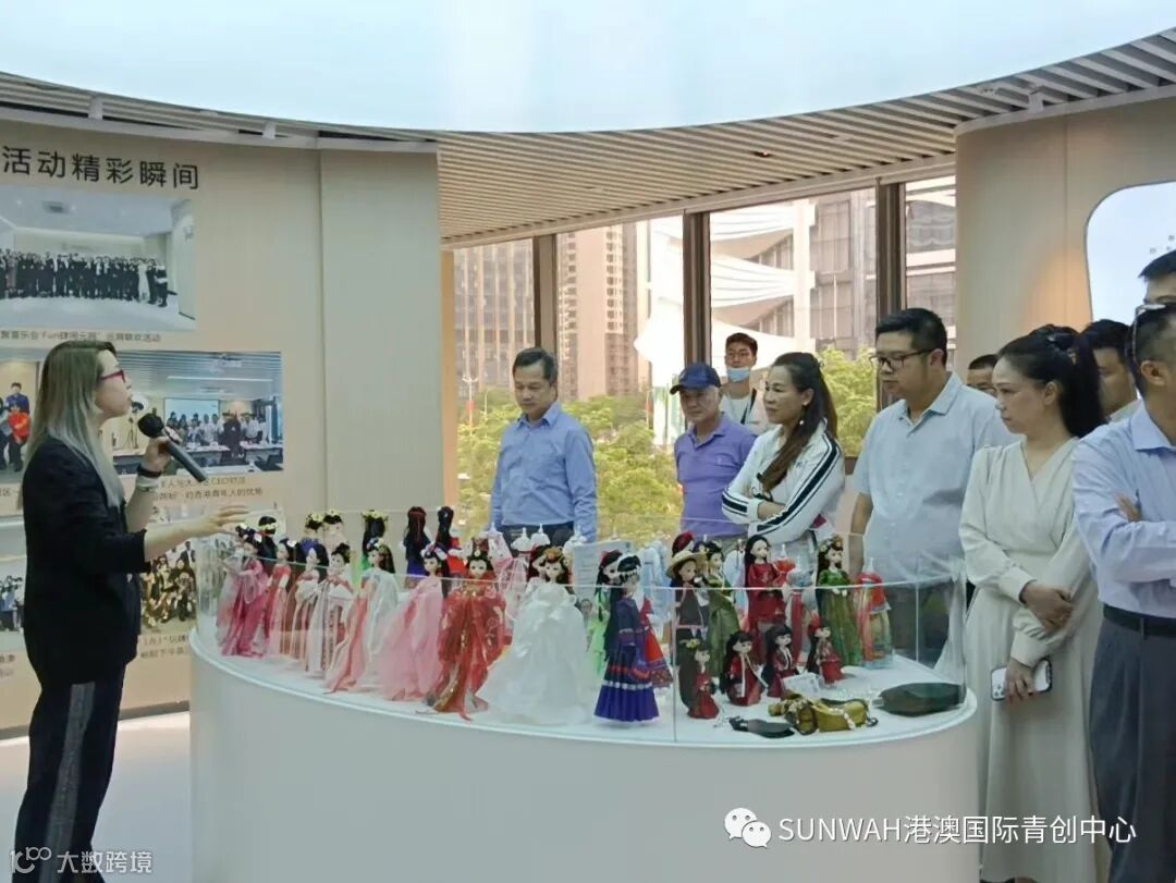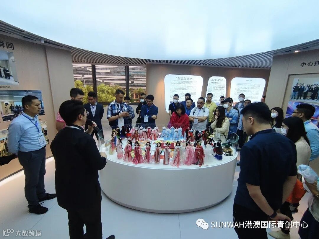 区政协港澳委员一行莅临中心参观交流,在中心负责人蔡总的陪同下参观展厅并与入驻团队创始人进行深入交流,众人移步到“国潮娃娃”展台边上,被“国潮娃娃”靓丽的造型所惊艳到,表示娃娃的服饰设计恰到好处,能正确发扬优秀中华传统文化。