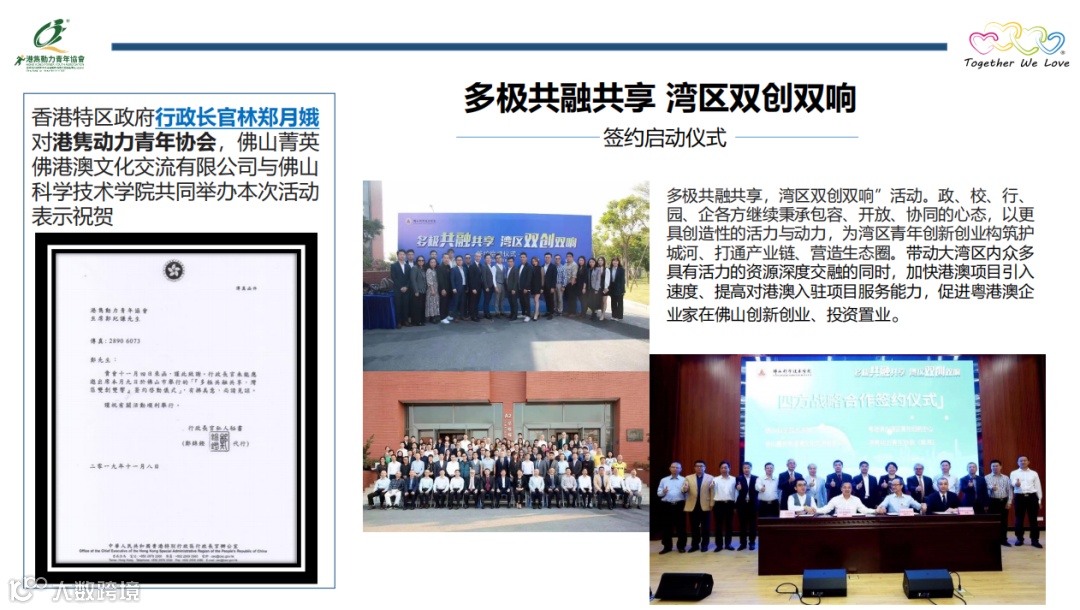 双方签订了合作协议,成为紧密合作伙伴,协力推动粤港澳大湾区青年创新创业交流,共同发展创新创业空间服务,共建粤港澳三地人才合作与交流平台。