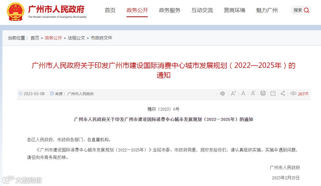 3月8日,从广州市人民政府官网获悉,《广州市建设国际消费中心城市发展规划(2022—2025年)》(以下简称《发展规划》)正式印发实施。