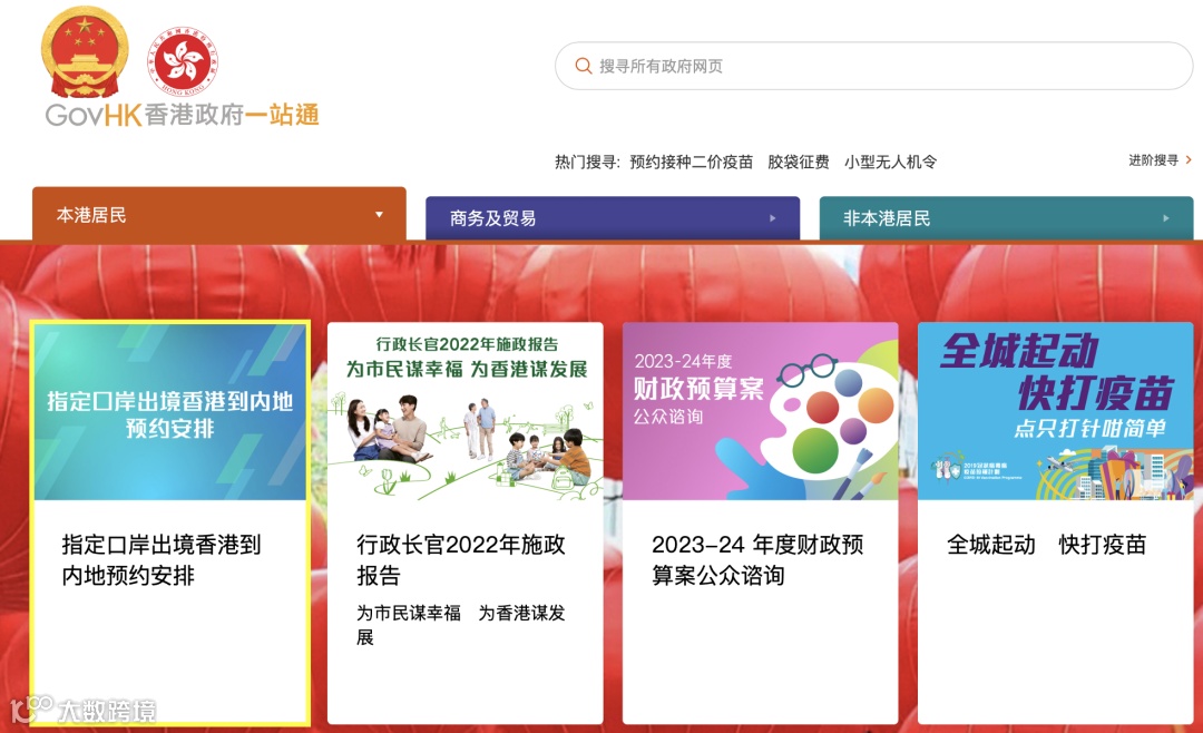 预约地址: https://www.gov.hk/sc/residents/(点击左下角“阅读原文”直接跳转)