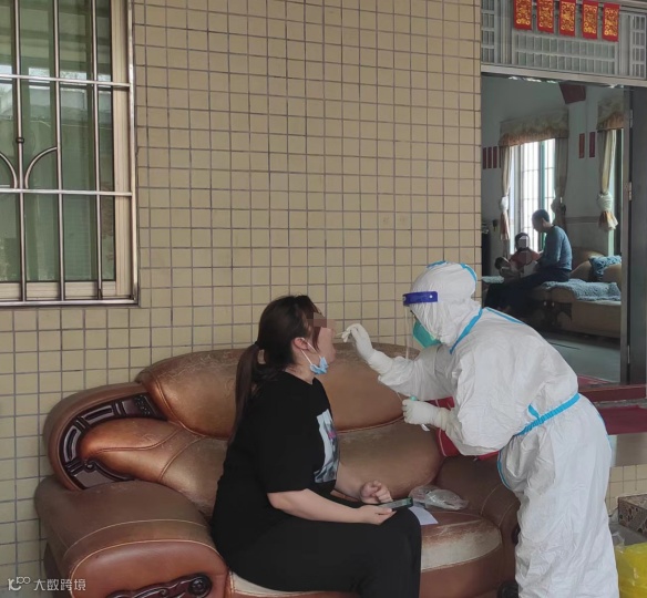在番禺新沙塑料城核酸采样现场,为了让大家更快速地完成采样,来自番禺区中医院的穿着厚重防护服的“大白”们,不厌其烦地一次次起身、坐下,用一个个细微的举动展现着医者的责任与温度。