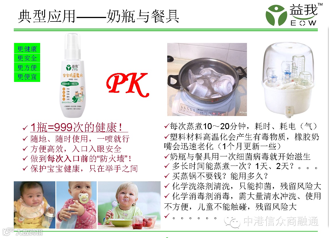 〖适用范围〗1.宝宝的手部,日常抗菌、防病毒传染。2.宝宝日常生活中:奶嘴、奶瓶、餐具、水杯、水果、吸奶器等,使用前的快速杀菌。3.宝宝在公共场合中:公用餐具、水杯等,使用前的快速杀菌。宝宝哺乳前,妈咪奶头的快速清洁杀菌。