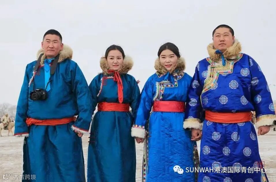 蒙古族服饰也称为蒙古袍,主要包括长袍、腰带、靴子、首饰等。但因地区不同在式样上有所差异。蒙古族服饰具有浓郁的草原风格特色,以袍服为主,便于鞍马骑乘。因为蒙古族长期生活在塞北草原,蒙古族人不论男女都爱穿长袍。牧区冬装多为光板皮衣,也有绸缎、棉布衣面者。夏装多布类。长袍身端肥大,袖长,多红、黄、深蓝色。男女长袍下摆均不开衩。红、绿绸缎做腰带。