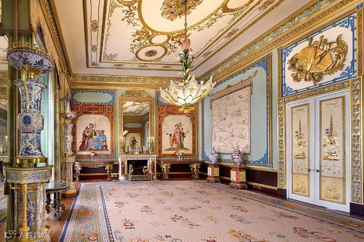 部分房间采用中国主题装饰,因为布莱顿的亚洲风格皇家馆被出售以支付其建设费用,部分文物也因此从布莱顿搬到了伦敦。请留意九层中国瓷塔和麒麟钟,其中有两只绿松石中国狮子。