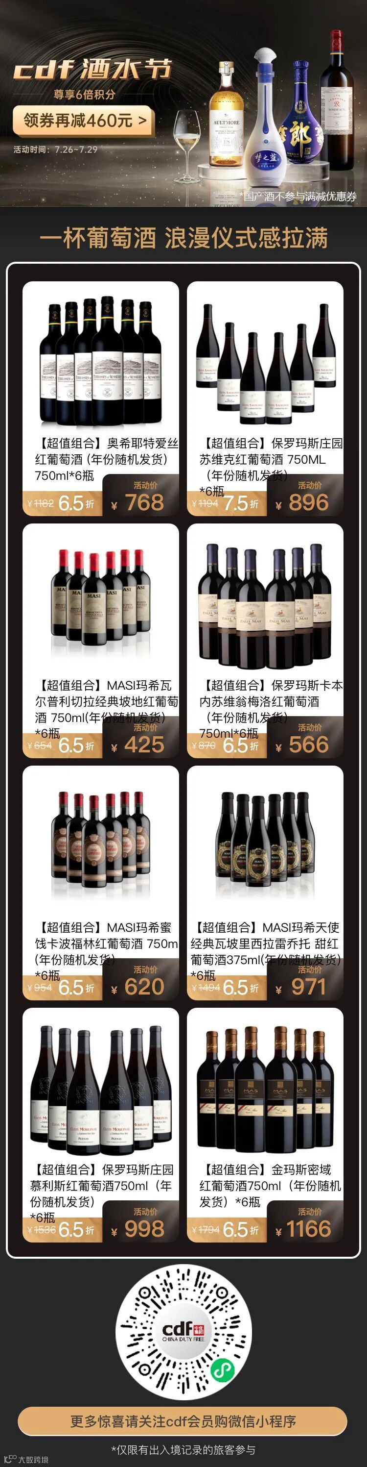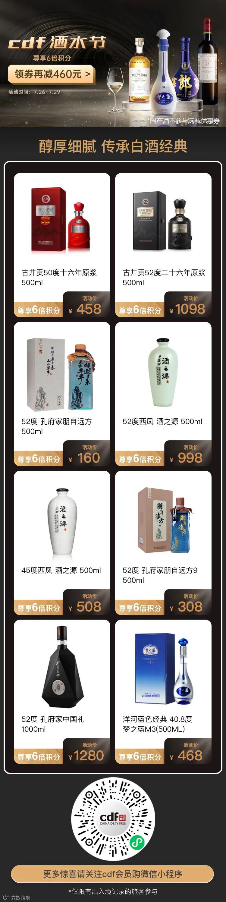 导读:cdf会员购酒水节今晚0点就要结束啦!国产酒6倍积分!优惠价礼包!全为你准备好!你的酒柜还缺哪一款酒?赶紧来