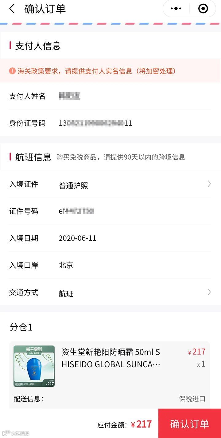 填写时也好奇到底能否通过,现在妥妥的都收到货了。不过有一点要注意,护照、身份证和支付人需要信息一致。