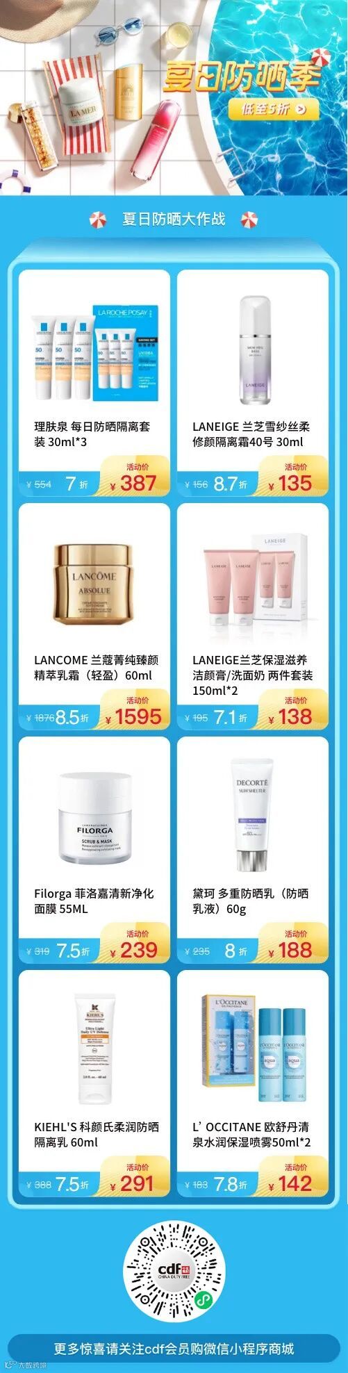 cdf会员购夏日防晒季今晚0点准时开抢,黛珂防晒低至¥188