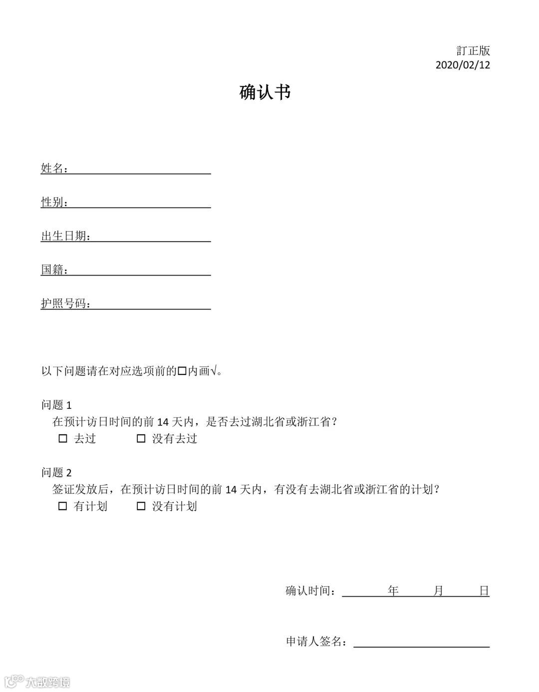 (1)在申请签证时,要求所有的申请人提交确认书,选择“(在预计访日时间的前14天内)去过”或“(签证发放后,在预计访日时间的前14天内)有计划去”湖北省或浙江省的申请人,除特殊情况外,签证申请原则上不予受理。