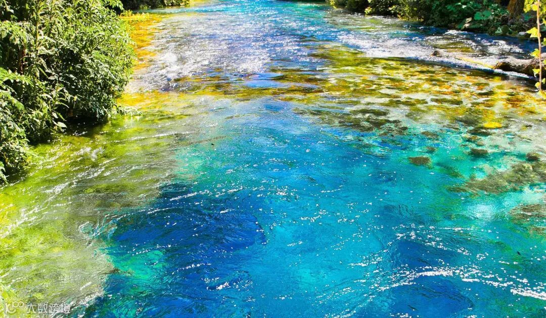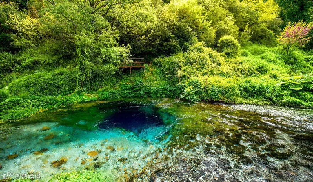 潜水员降到了五十米,但目前还不清楚岩溶洞的实际深度是多少。泉水特别清澈,泉眼部分像是一只有魔力的眼睛,被国人成为迷你版的九寨沟。