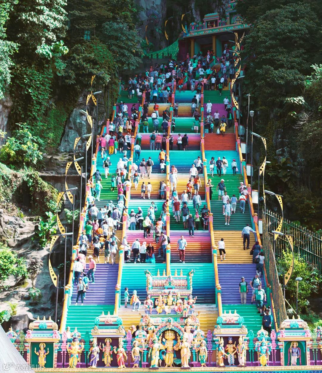 马来西亚印度教圣地黑风洞,位于吉隆坡北郊1公里处,被发现已有l00多年之久,是游客来访马来西亚的高频观光地。每个欲抵达此庙者,皆必须攀登拥有 272 梯级的陡峭阶梯。