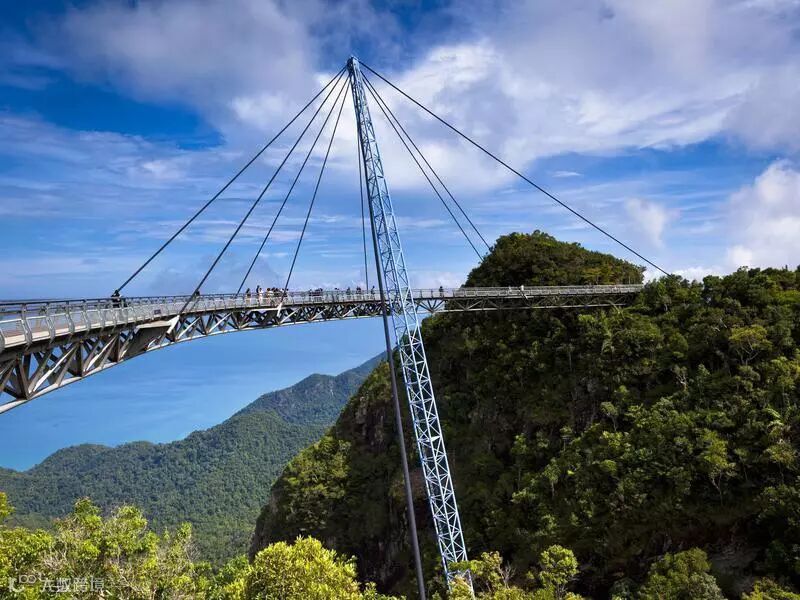 兰卡威天桥于2004年完工,是世界上最长的自由跨度和弯曲悬索桥。这座长125米的大桥悬挂在约687米(几乎是足球场的长度)的空中,位于Machinchang山顶,可以欣赏到下面郁郁葱葱的绿色丛林的壮丽景色。