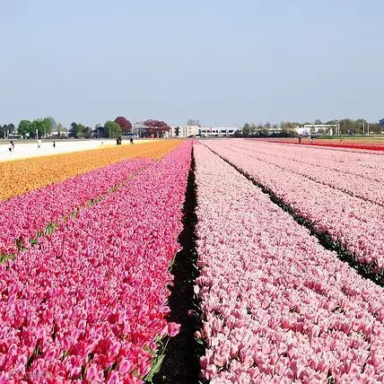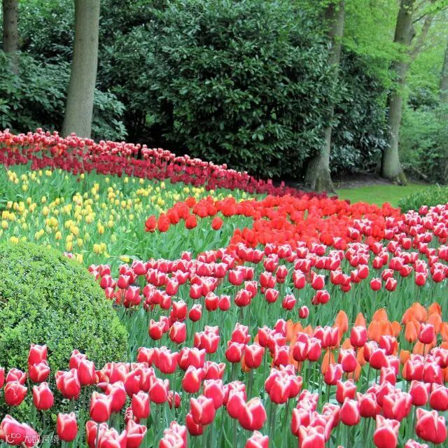 当和煦的微风吹拂整个欧洲,郁金香的花茎破土而出,欧洲春天的脚步从荷兰迈出。荷兰人对郁金香的热爱,到了近乎痴迷的状态。一到赏郁金香的季节,大街小巷、门前窗后、公园路边,随处可见郁金香!每年3月至5月期间,荷兰大地被鲜花“淹没”,花田如彩带般五颜六色,纵横的花田,交错的河道,巍然的风车组成了荷兰这独一无二的美丽春天。春日里,骑着自行车穿梭在郁金香花海里,远处是一个个风车,这种纯正的田园风也只有在荷兰才能感受得到!
