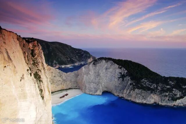 沉船湾,位于希腊扎金索斯岛,有天堂之岛美誉。那里有陡峭的悬崖和澄澈蔚蓝的海水,闻名遐迩,辽阔的沙滩上,洁白的细沙反射着太阳的光芒,与清澈的海水交相辉映,令人陶醉。洁白的沙滩间,横着一条锈迹斑斑的沉船残骸,让这个宁静的海滩更添一份神秘感。