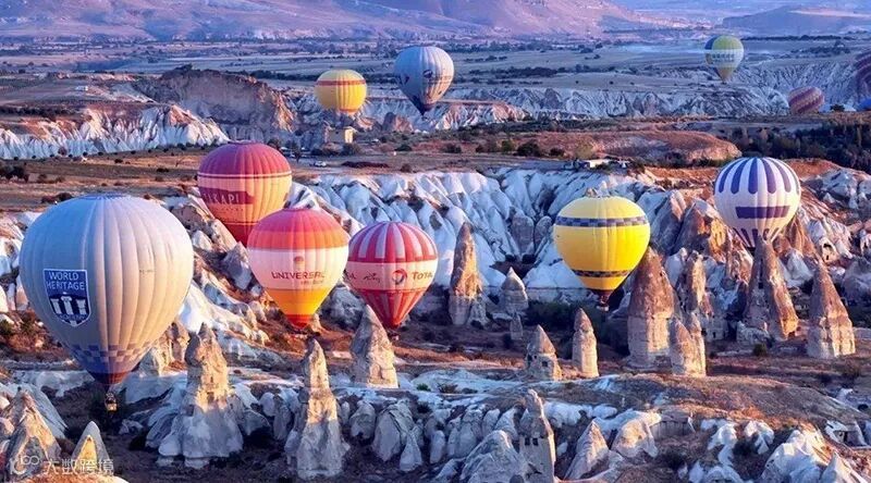 同样是一种“坐着的冒险活动”,乘“热气球”上天也是个不错的选择。原本作为体育运动的热气球,近些年也逐步被开发成了旅游探险项目。一句脍炙人口的“想要带你去浪漫的土耳其”,很大程度上就是指浪漫的热气球。