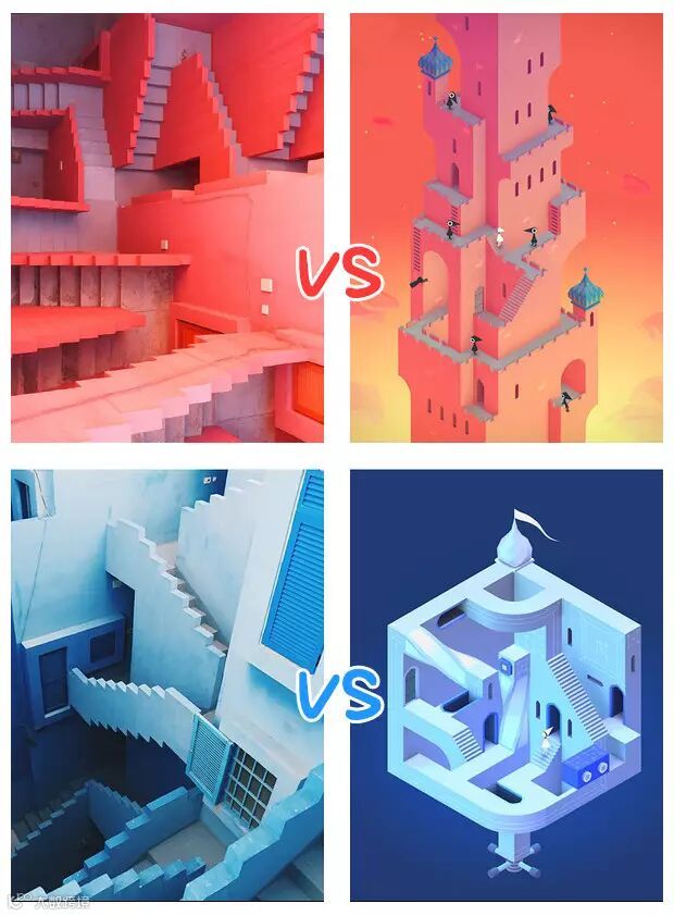 拿来与游戏中的图对比看看,现实中的“红墙”与纪念碑谷的游戏场景,你真的分得清吗?!