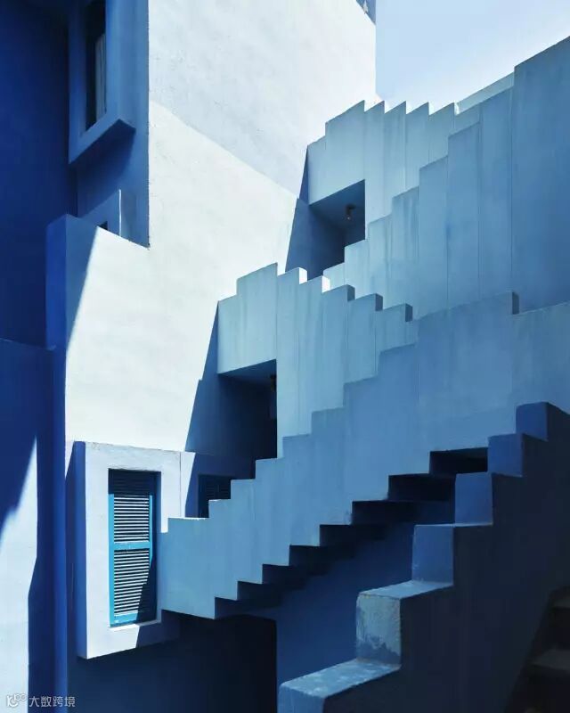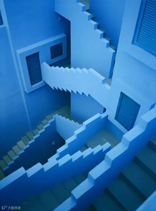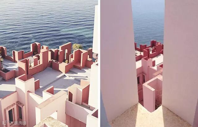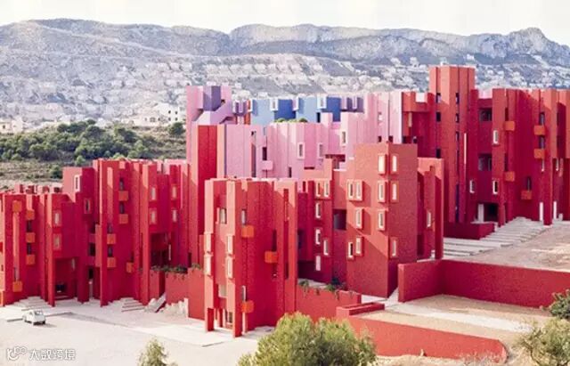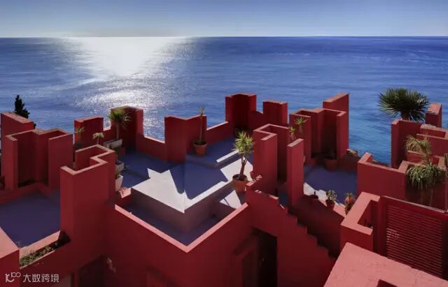这座真实版的“纪念碑谷”,位于西班牙东部沿海,临近西班牙第三大都市,瓦伦西亚(Valencia)。其实这里是一座隐逸于海边的高级住宅区,建筑群整体运用红、白、蓝等引人注目的颜色,与自然形成鲜明对比。各种不规则的线条、框架,让人脑海中不自觉的浮现出四个字:纪念碑谷!