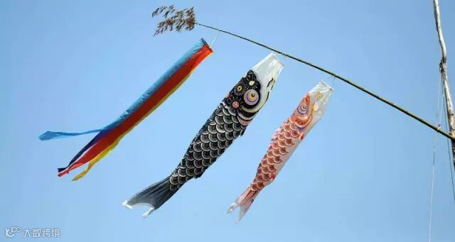 鲤鱼旗则由七色彩旗和红黑两色的“真鲤”“绯鲤”组成,红色代表母亲、黑色代表父亲、青蓝色代表男孩,青蓝旗的个数代表男孩人数。旗子会在蔚蓝的天空里迎风飘动,表示鲤鱼跳龙门之意。