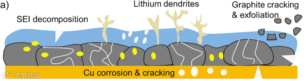 回收困境: 退役石墨存在SEI破坏、锂枝晶生长、颗粒破裂等多重损伤,表面污染复杂,直接再生难度大。