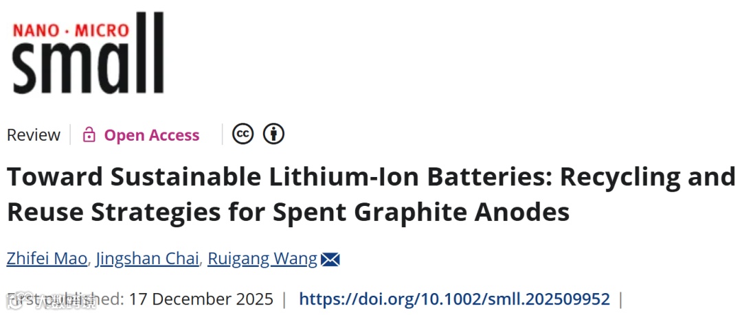 Zhifei Mao, Jingshan Chai, Ruigang Wang*. Toward Sustainable Lithium-Ion Batteries: Recycling and Reuse Strategies for Spent Graphite Anodes. Small, 2025.