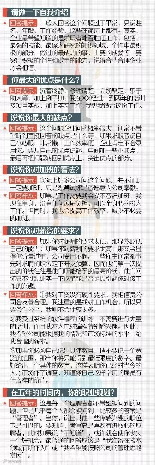 导读:5月中旬过后越来越多的面试,实习接踵而来没有进入过社会的学生们亿点连接为各位奉上“面试问答集锦”仅供转发使用