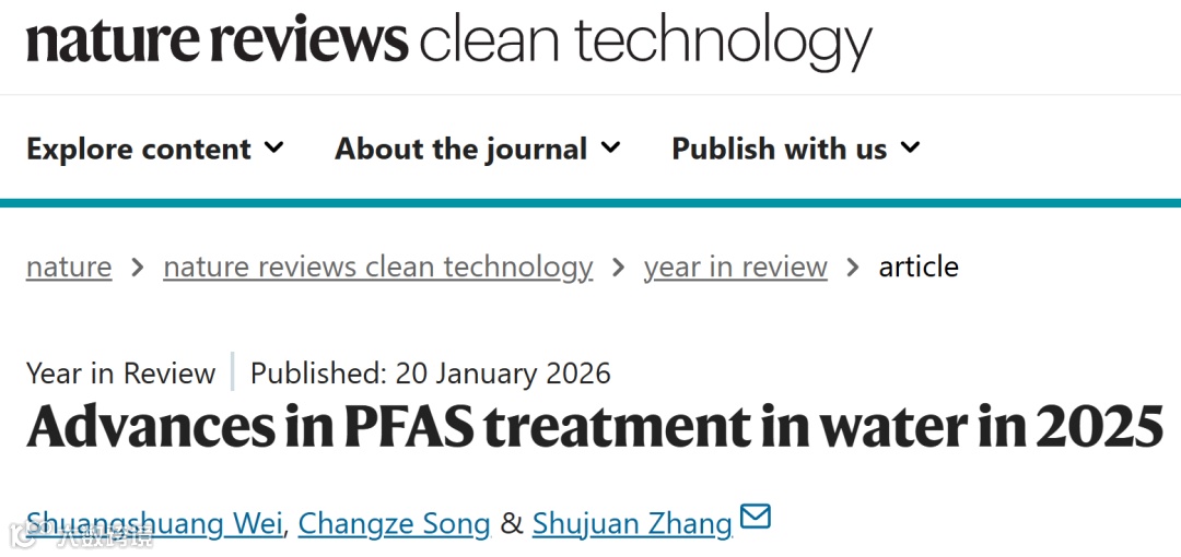 近日,南京大学环境学院张淑娟教授团队在国际顶尖期刊 《Nature Reviews Clean Technology》 发表了题为 “Advances in PFAS treatment in water in 2025” 的年度综述。该文系统评述了过去一年中PFAS水处理领域的关键突破,明确指出该领域正从单纯的“分离与破坏”范式,向 “完全矿化与资源回收” 的战略方向演进。综述特别强调,对PFAS降解微观机理的重新认识——即初始电子转移步骤的高能垒是主要限制——为设计高效混合处理技术提供了根本理论指导,并推动了吸附-焦耳热转化、微滴界面反应等颠覆性技术的发展。