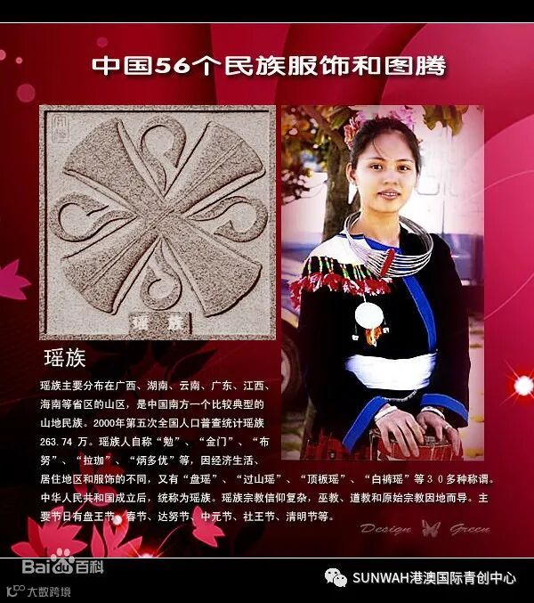 简介:瑶族是中国南方一个比较典型的山地民族。瑶族人自称“勉”、“金门”、“布努”、“拉珈”、“炳多优”等,因经济生活、居住地区和服饰的不同,又有30多种称谓。中华人民共和国成立后,统称为瑶族。