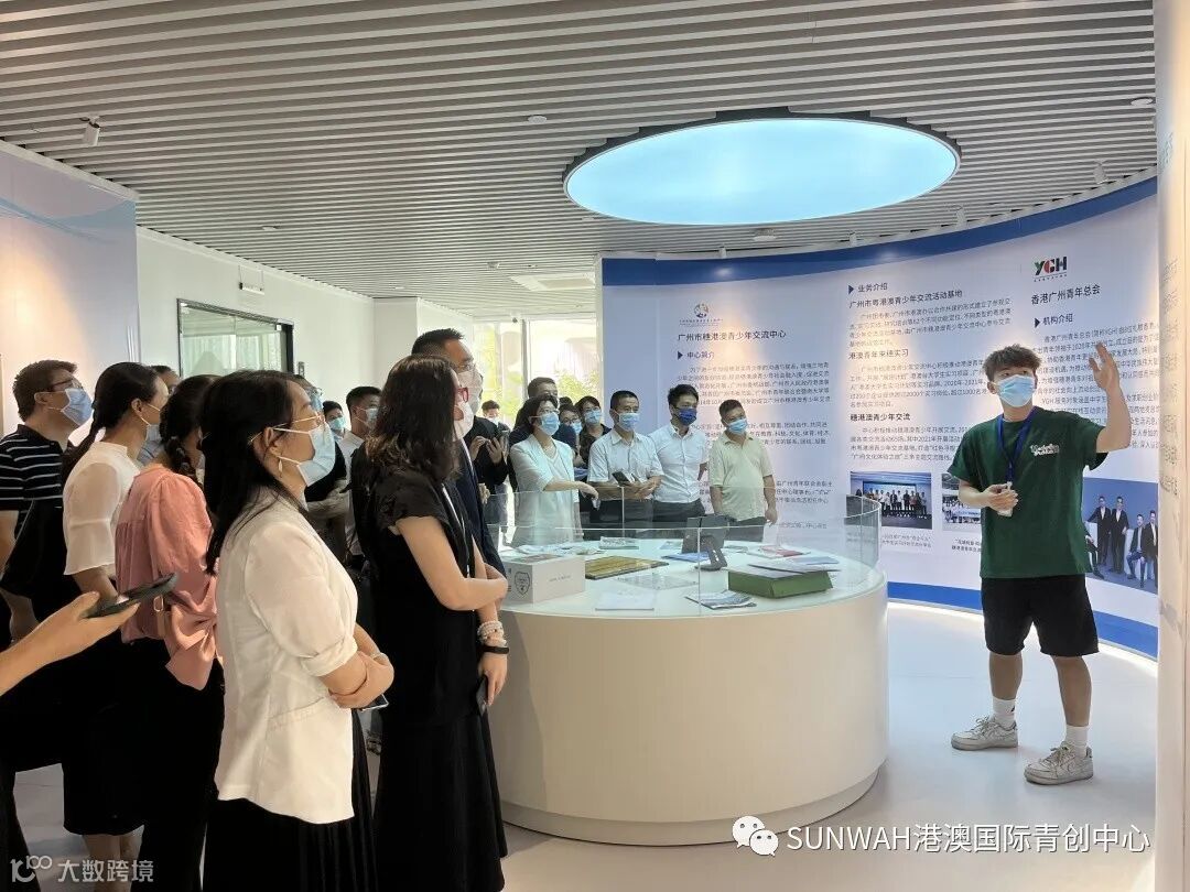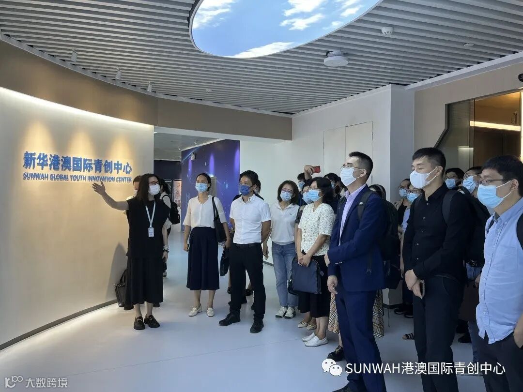 九三学社成员一行到访本中心,中心负责人蔡总带领九三学社一行分别参观了位于中心大堂一楼的粤港澳融合文创区、港式餐饮区,并详细介绍了中心导入资源和项目入驻情况。