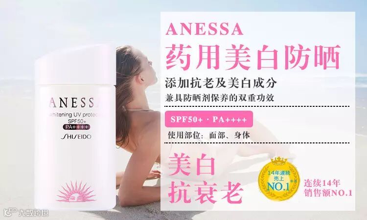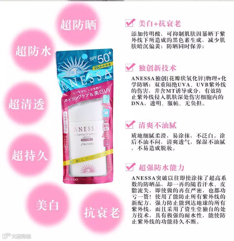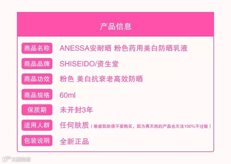 【海外购】日本资生堂 ANESSA安耐晒 美白防晒霜SPF50 PA++++ 粉瓶60ML