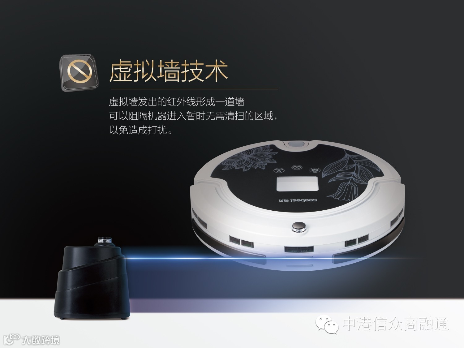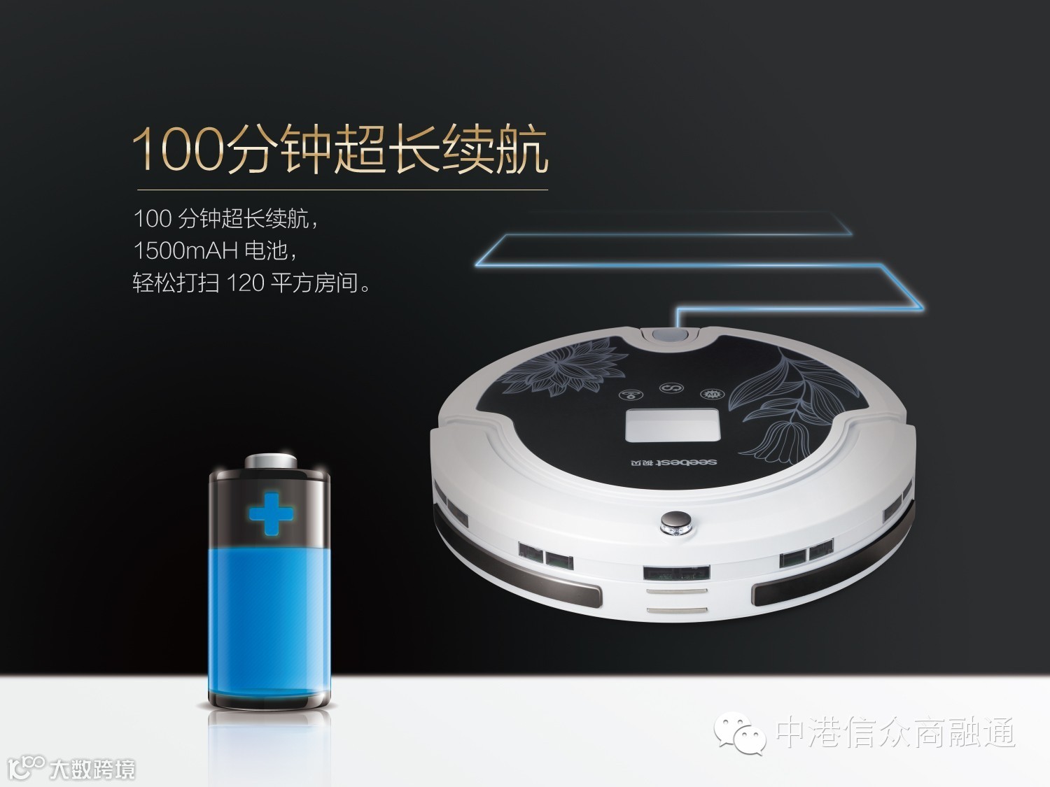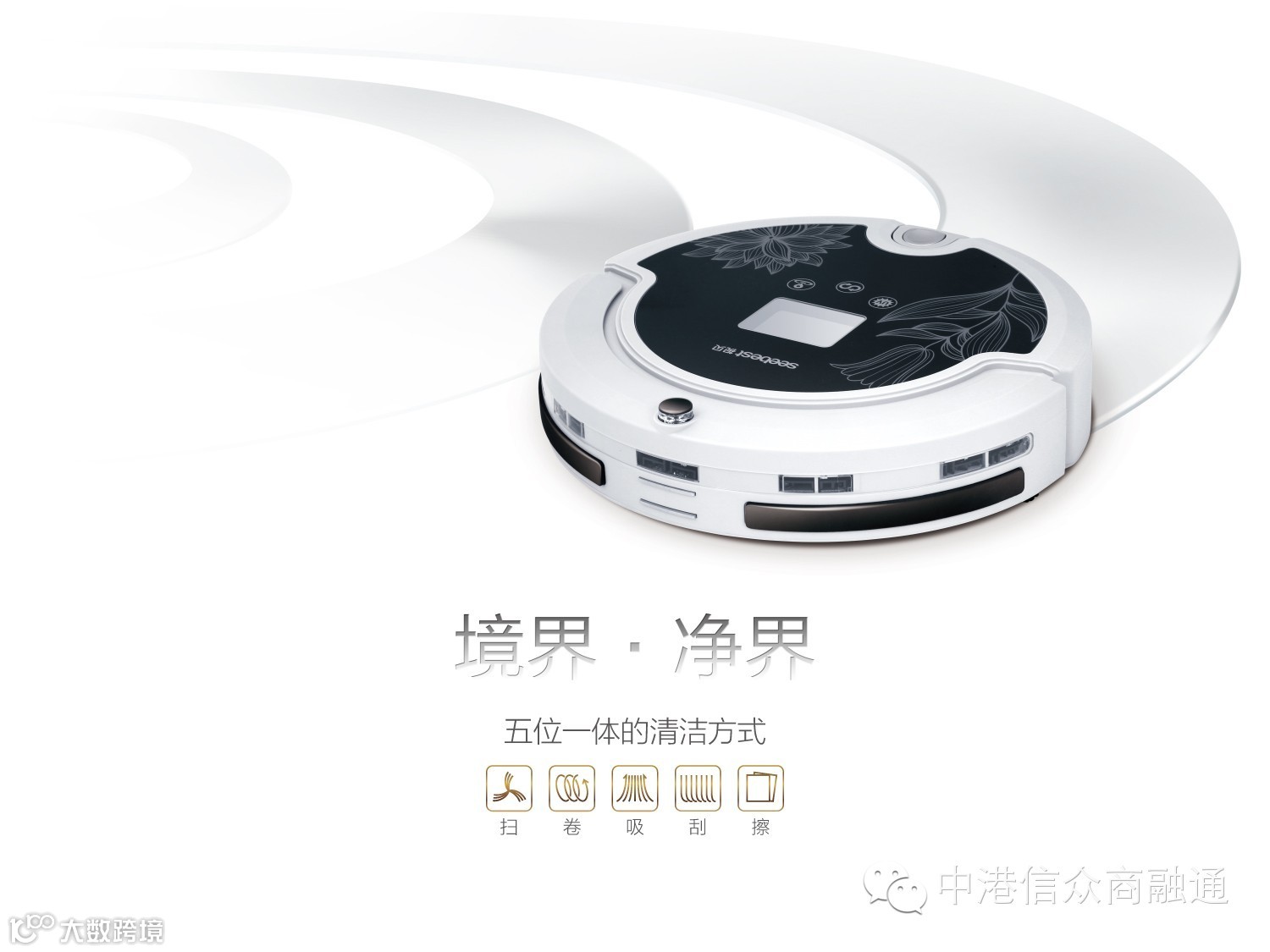 在原有智能吸尘器基础上外挂拖板拖布,同时吸尘、清扫、拖地、杀菌消毒、空气过虑,清洁率100%,可以自由拆装使用。杀菌消毒功能